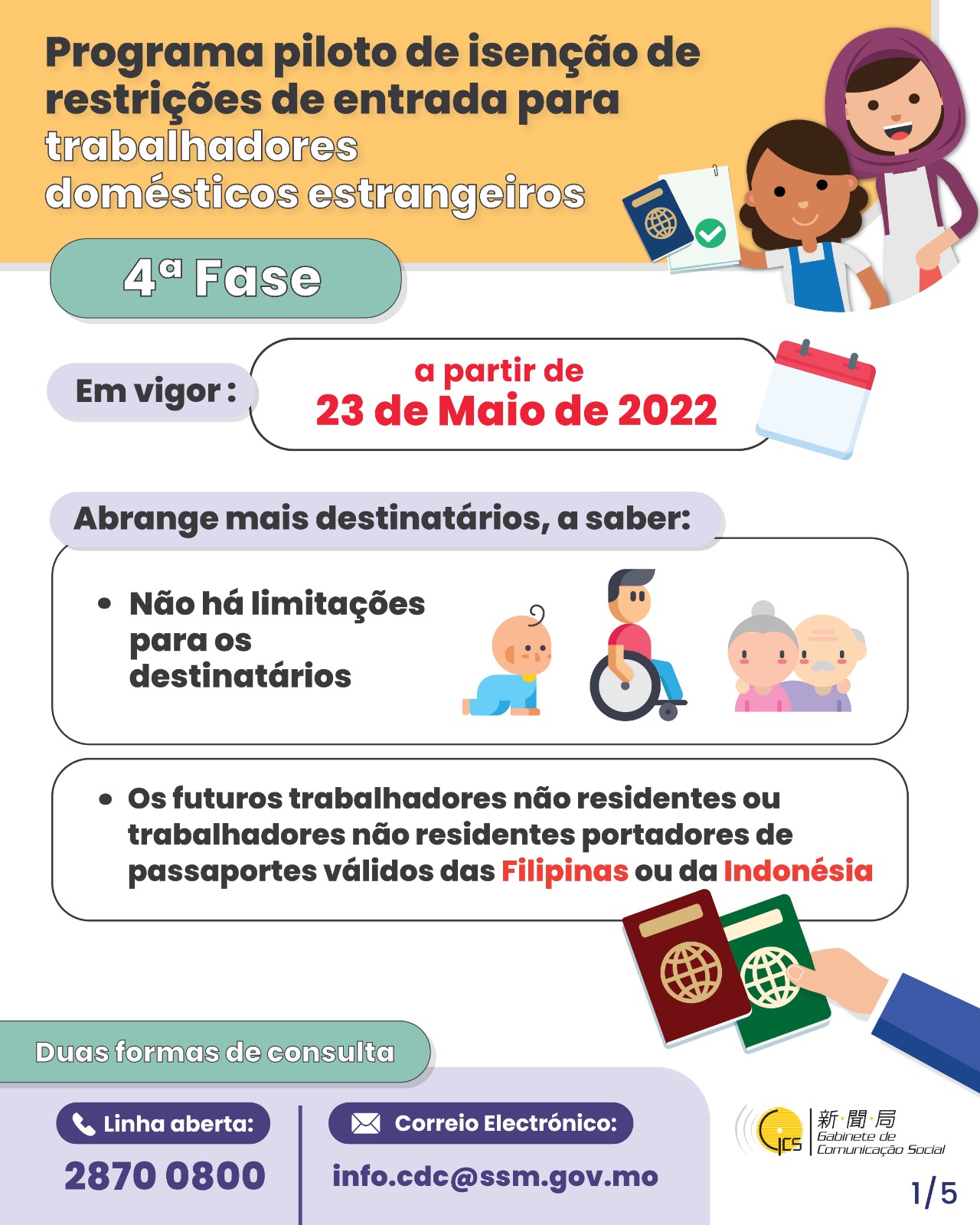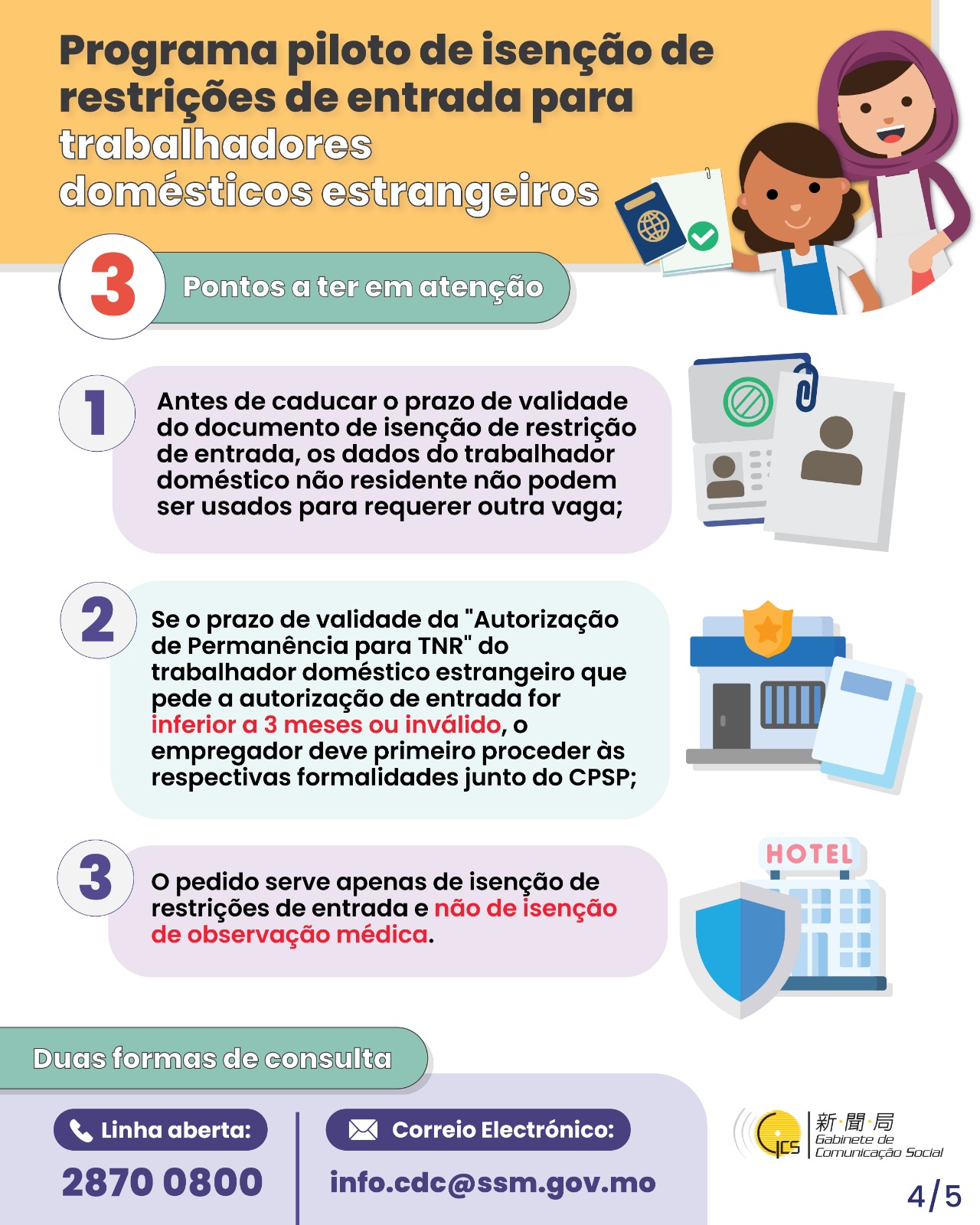 • Programa piloto de isenção de restrições de entrada para trabalhadores domésticos estrangeiros --- 4ª fase