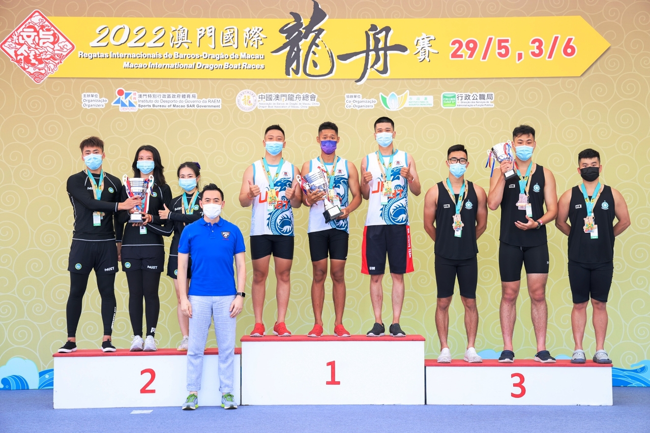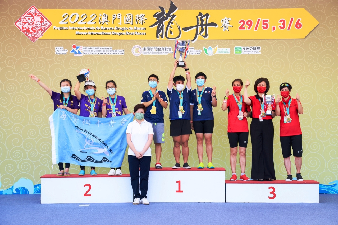 As “Regatas Internacionais de Barcos-Dragão de Macau 2022”, organizadas pelo Instituto do Desporto e pela Associação de Barcos de Dragão de Macau, China, e com a colaboração do Instituto para os Assuntos Municipais e da Direcção dos Serviços de Administração e Função Pública, tiveram lugar hoje (29) no Centro Náutico da Praia Grande. Hoje (29) realizaram-se as provas para Pequenas Embarcações. Após as provas competitivas, DC Systems Digital Communications Ltd. venceu na Regata de Barcos-Dragão em Pequenas Embarcações – Categoria Open 200m.