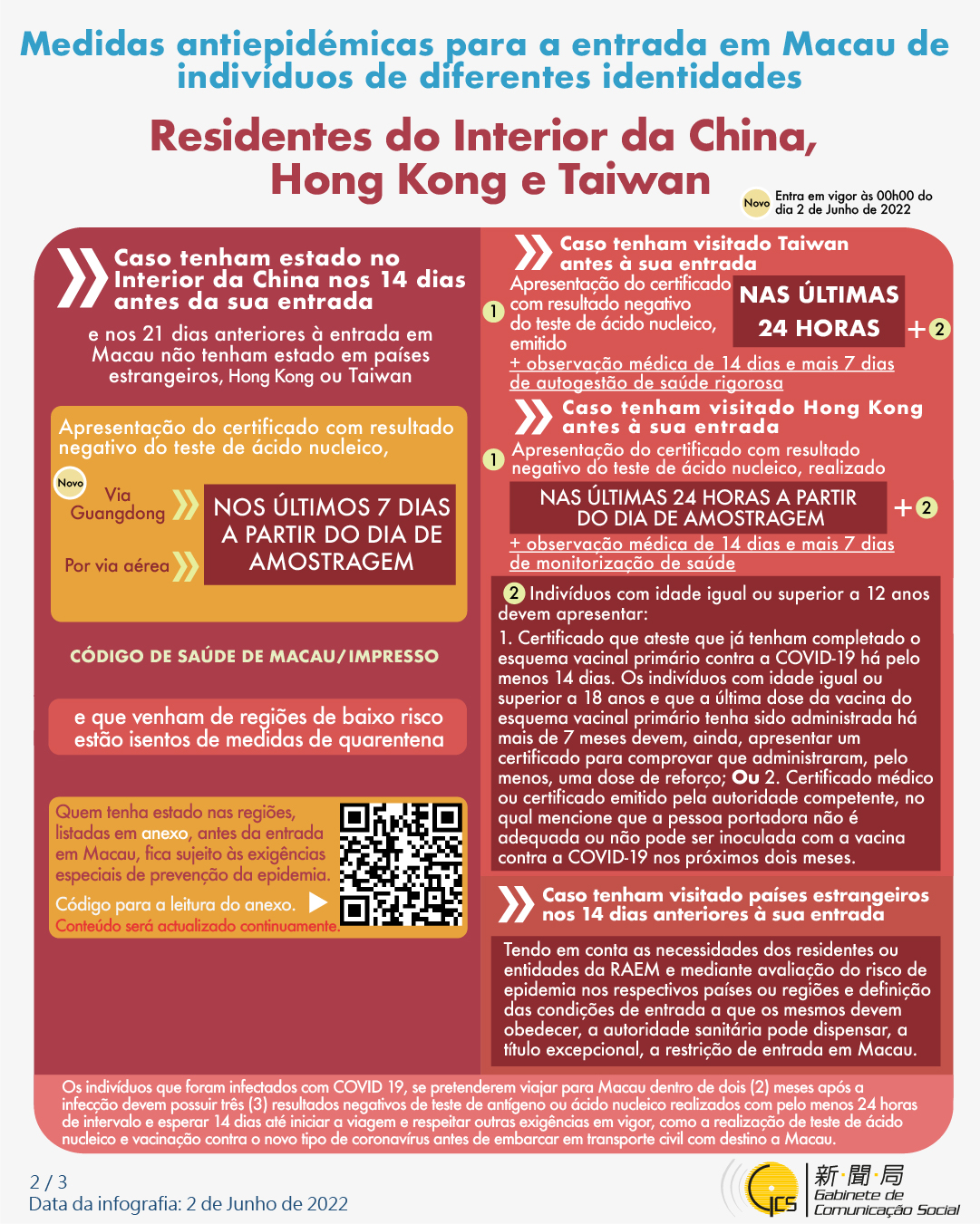 (Infografia)Medidas antiepidémicas para a entrada em Macau de indivíduos de diferentes identidades, actualizadas no dia 2 de Junho de 2022