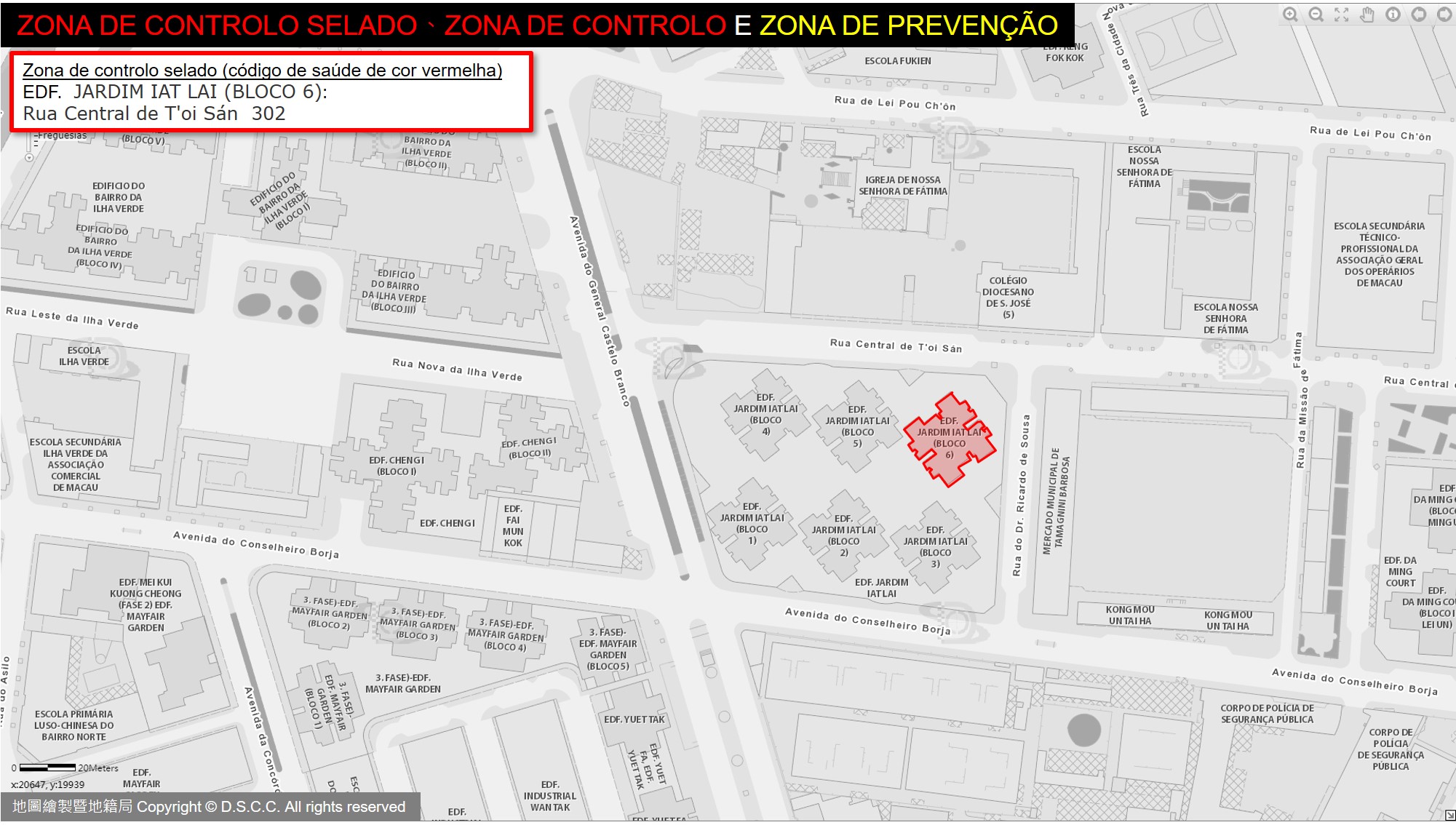 - EDF. JARDIN IAT LAI (BLOCO 6) (Rua central de T’oi Sàn 302) ;
