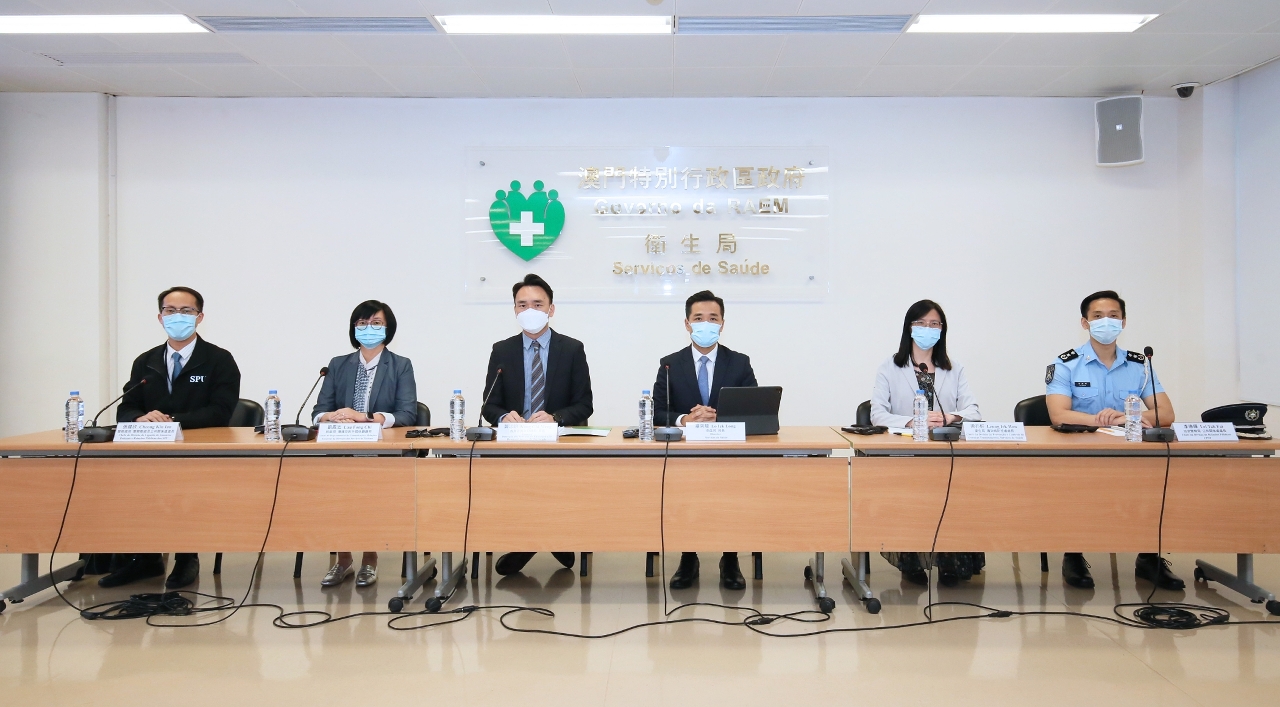 Estiveram presentes na conferência de imprensa: O Director dos Serviços de Saúde, Dr. Alvis Lo Iek Long, o Director da DSEDJ Dr. Kong Chi Meng, a Chefe do Departamento de Comunicação e Relações Externas da Direcção dos Serviços de Turismo, Dr.ª Lau Fong Chi, a Chefe da Divisão de Prevenção e Controlo de Doenças Transmissíveis do CDC dos Serviços de Saúde, Dr.a Leong Iek Hou, o Chefe da Divisão de Ligação de Assuntos Policiais e Relações-Públicas dos Serviços de Polícia Unitários, Dr. Cheong Kin Ian, o Chefe da Divisão de Relações Públicas da PSP, Lei Tak Fai.