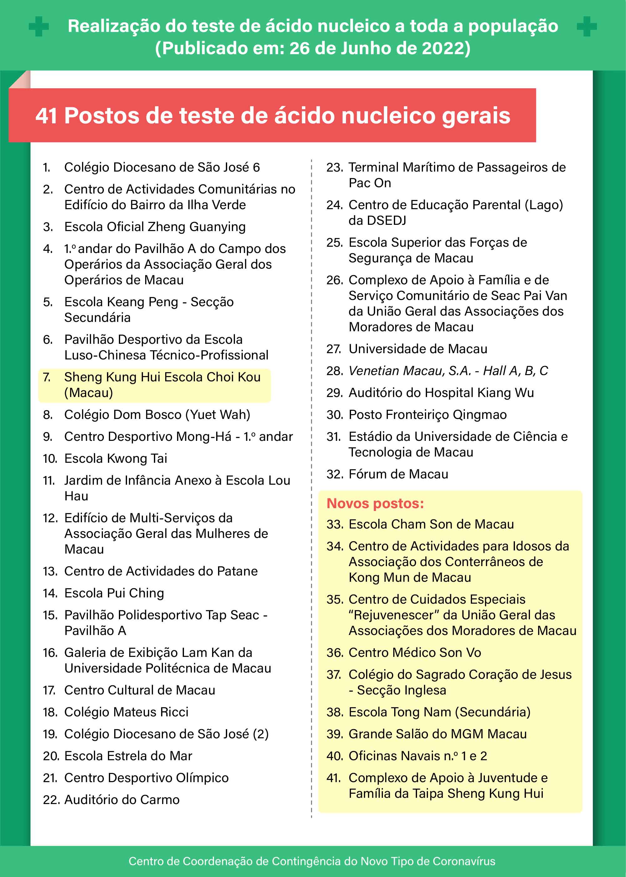 (Infografia) Teste de ácido nucleico a toda a população (das 09h00 do dia 27 de Junho às 18h00 do dia 28 de Junho de 2022)