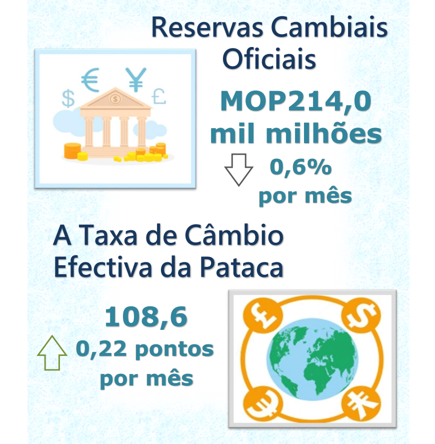 A taxa de câmbio efectiva da pataca, ponderada pelas suas quotas do comércio, foi de 108,6 em Junho de 2022, registaram acrescimentos de 0,22 pontos e 6,22 pontos, respectivamente, sobre os dados do mês anterior e relativos a Junho de 2021, implicando que globalmente, a pataca subiu face às moedas dos principais parceiros comerciais de Macau.
