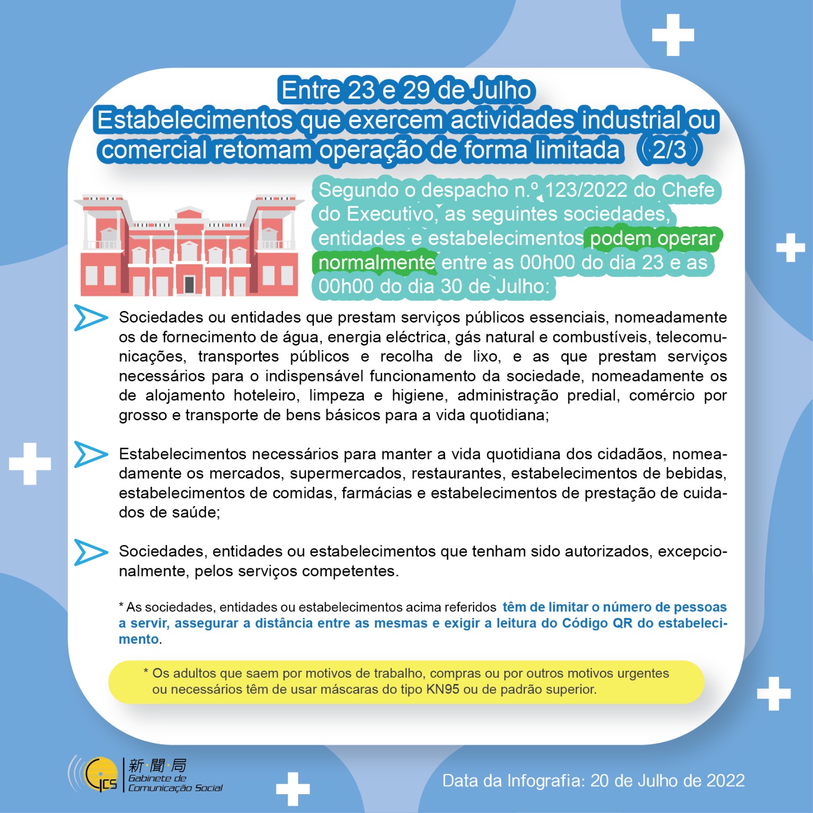 【Infografia】Estabelecimentos que exercem actividades industrial ou comercial retomam operação de forma limitada entre 23 e 29 de Julho