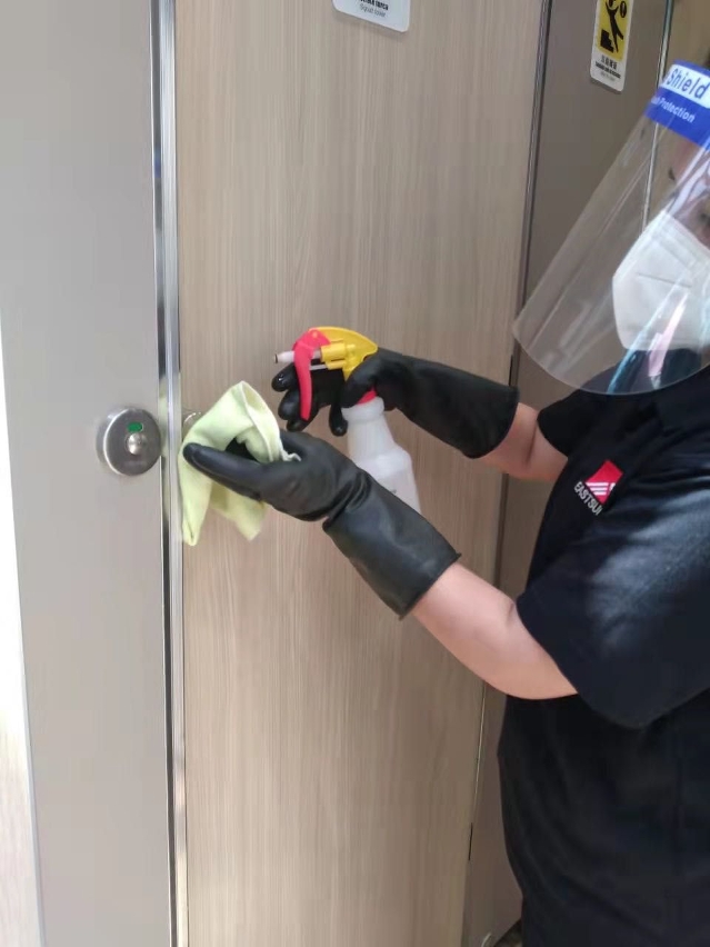 Com vista a garantir a segurança e higiene dos sanitários púbicos, além de aumentar a frequência da limpeza e desinfecção destes, o pessoal da limpeza reforça o grau de intensidade da limpeza e desinfecção, tornando-a mais completa e profunda, incluindo lavar o chão com pistola de água de alta pressão, limpar ventiladores, exaustores e outras instalações, de modo a manter a limpeza e a desinfecção, e permitir uma utilização sem preocupações pelo público.