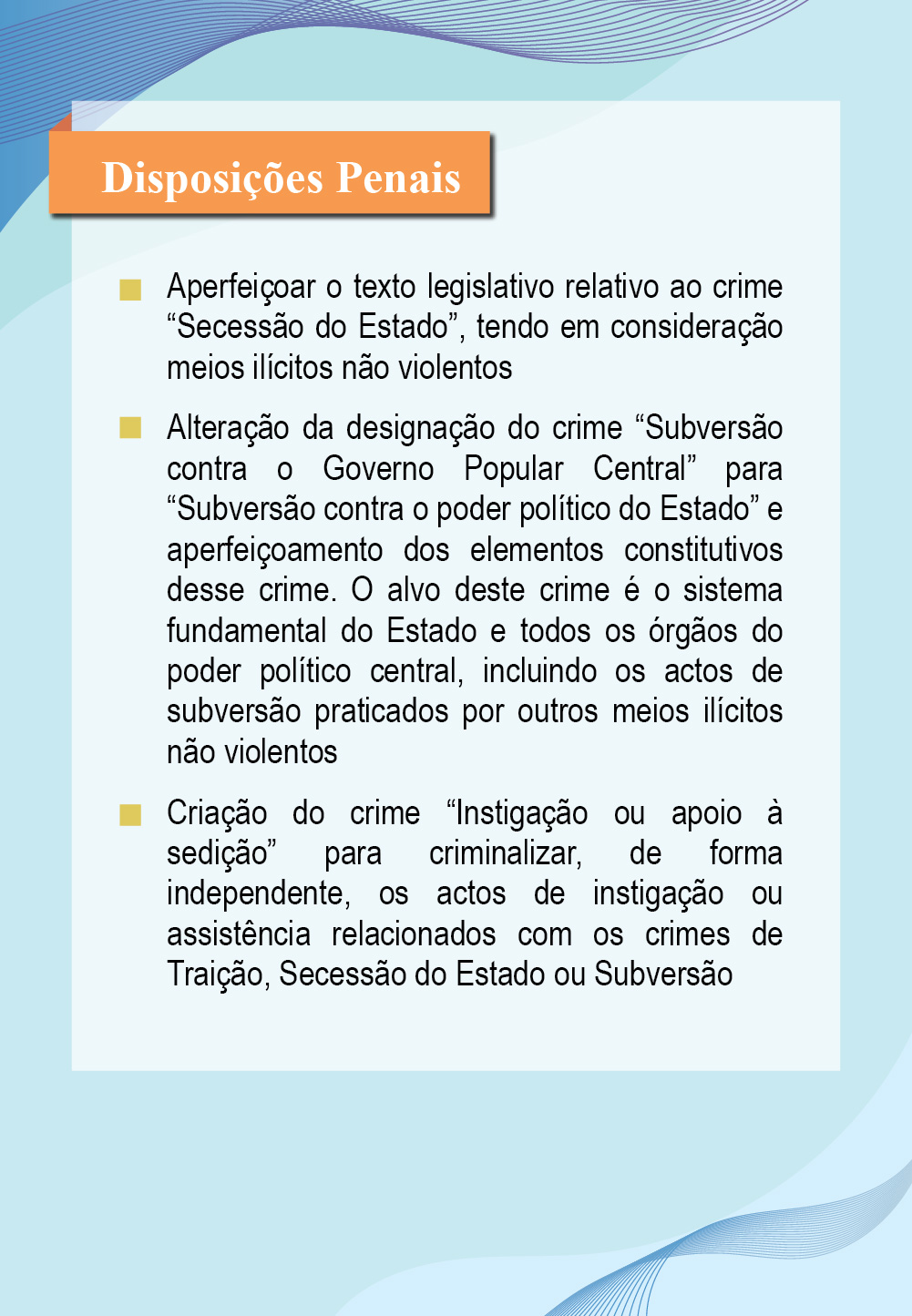 【Infografias】Consulta pública relativa à revisão da «Lei relativa à defesa da segurança do Estado» - Disposições Penais