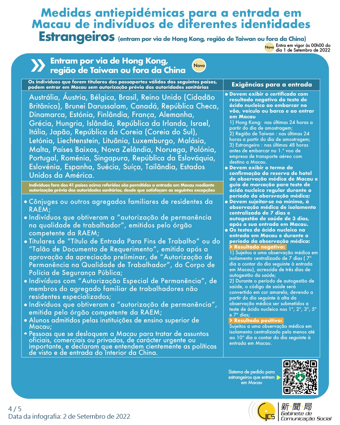 (Infografia) Medidas antiepidémicas para a entrada em Macau de indivíduos de diferentes identidades, actualizadas no dia 7 de Setembro de 2022