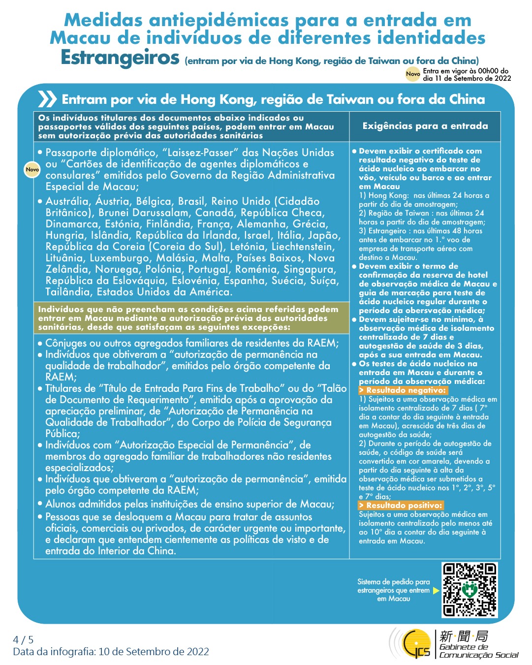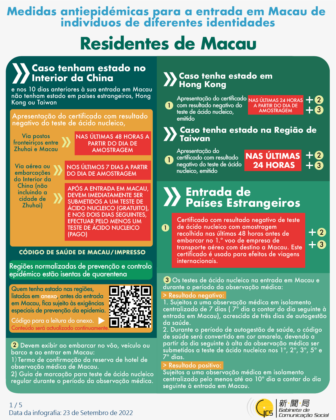(Infografia) Medidas antiepidémicas para a entrada em Macau de indivíduos de diferentes identidades, actualizadas no dia 18 de Setembro de 2022