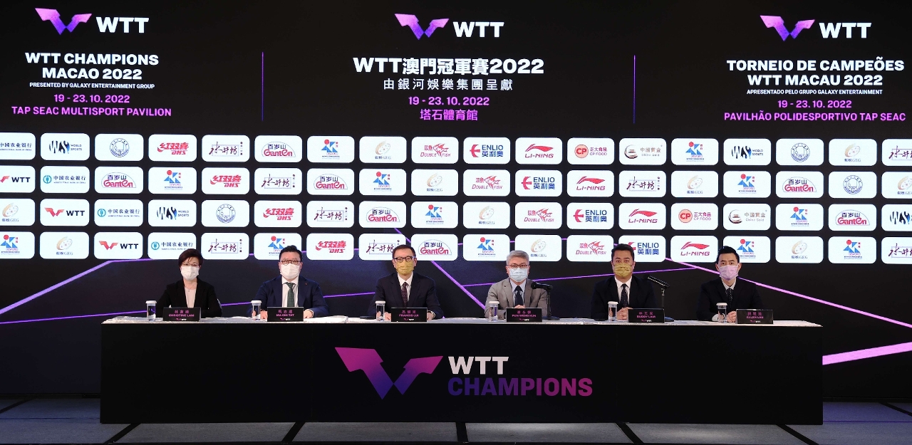 Organizado pelo Instituto do Desporto e pela World Table Tennis (WTT) e co-organizado pela Associação Geral de Ping-Pong de Macau, o Torneio de Campeões WTT Macau 2022, apresentado pelo Grupo Galaxy Entertainment (GEG), terá lugar de 19 a 23 de Outubro de 2022, no Pavilhão Polidesportivo do Tap Seac. O evento reunirá alguns dos melhores jogadores de ténis de mesa a nível mundial, os quais irão exibir as suas técnicas notáveis perante residentes e visitantes em várias provas de tirar o fôlego.