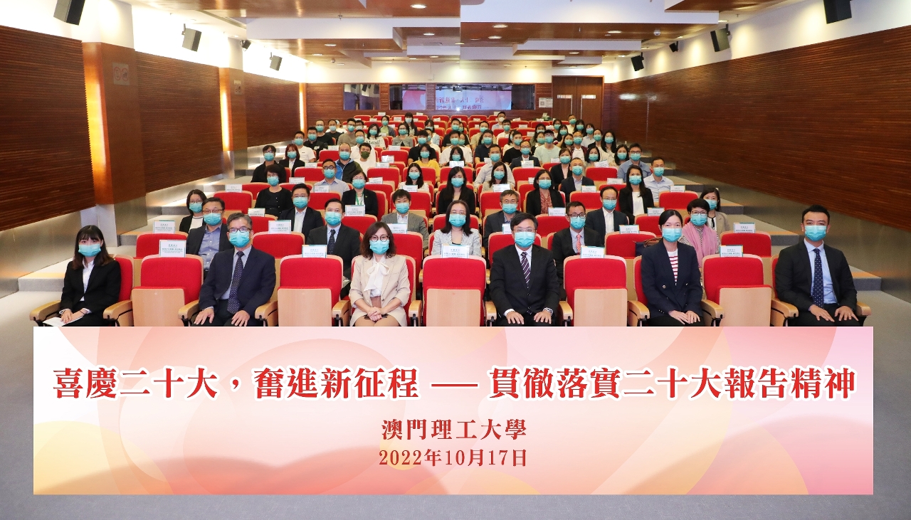 Na manhã do dia 16 de Outubro, no Grande Salão do Povo em Pequim, foi solenemente inaugurado o 20.º Congresso Nacional do Partido Comunista da China (PCC). Os docentes e alunos da Universidade Politécnica de Macau (UPM) puderam assistir a este evento, em emissão directa, para ouvir com atenção o relatório apresentado pelo Secretário-Geral do PCC, Xi Jinping. Em 17 de Outubro de 2022, a UPM organizou uma sessão de estudo intitulada “Celebração da Realização do 20.º Congresso Nacional dando início a uma nova jornada – Plena implementação do espírito do relatório ao 20.º Congresso Nacional”, na qual os professores e os actuais e antigos alunos puderam discutir em profundidade os conteúdos do relatório e partilhar os resultados da aprendizagem. Todos os membros do Conselho Administrativo, directores de faculdades, chefes das unidades académicas e dos serviços administrativos, para além de outros funcionários administrativos, docentes, alunos e representantes da Associação de Estudantes e da Associação dos Antigos Alunos da UPM, num total de cerca de cem pessoas, reuniram-se no anfiteatro do Edifício Wui Chi, para uma análise atenciosa do conteúdo do relatório ao 20.º Congresso Nacional, que decorreu com manifestações de grande expectativa e entusiasmo.