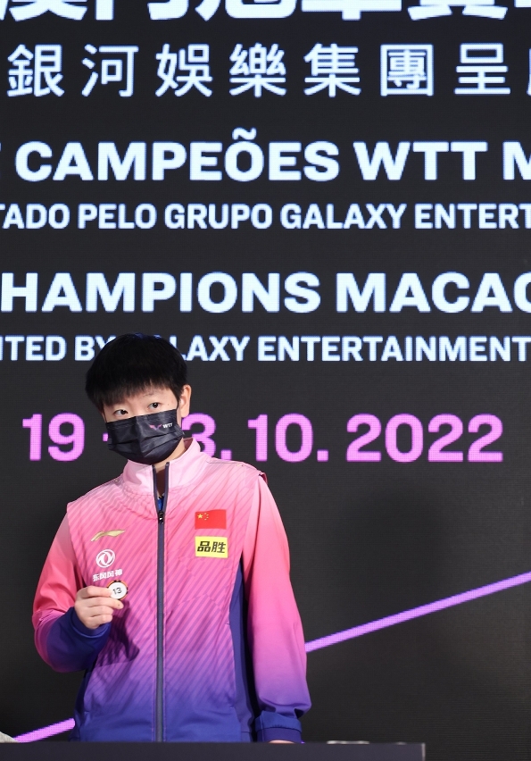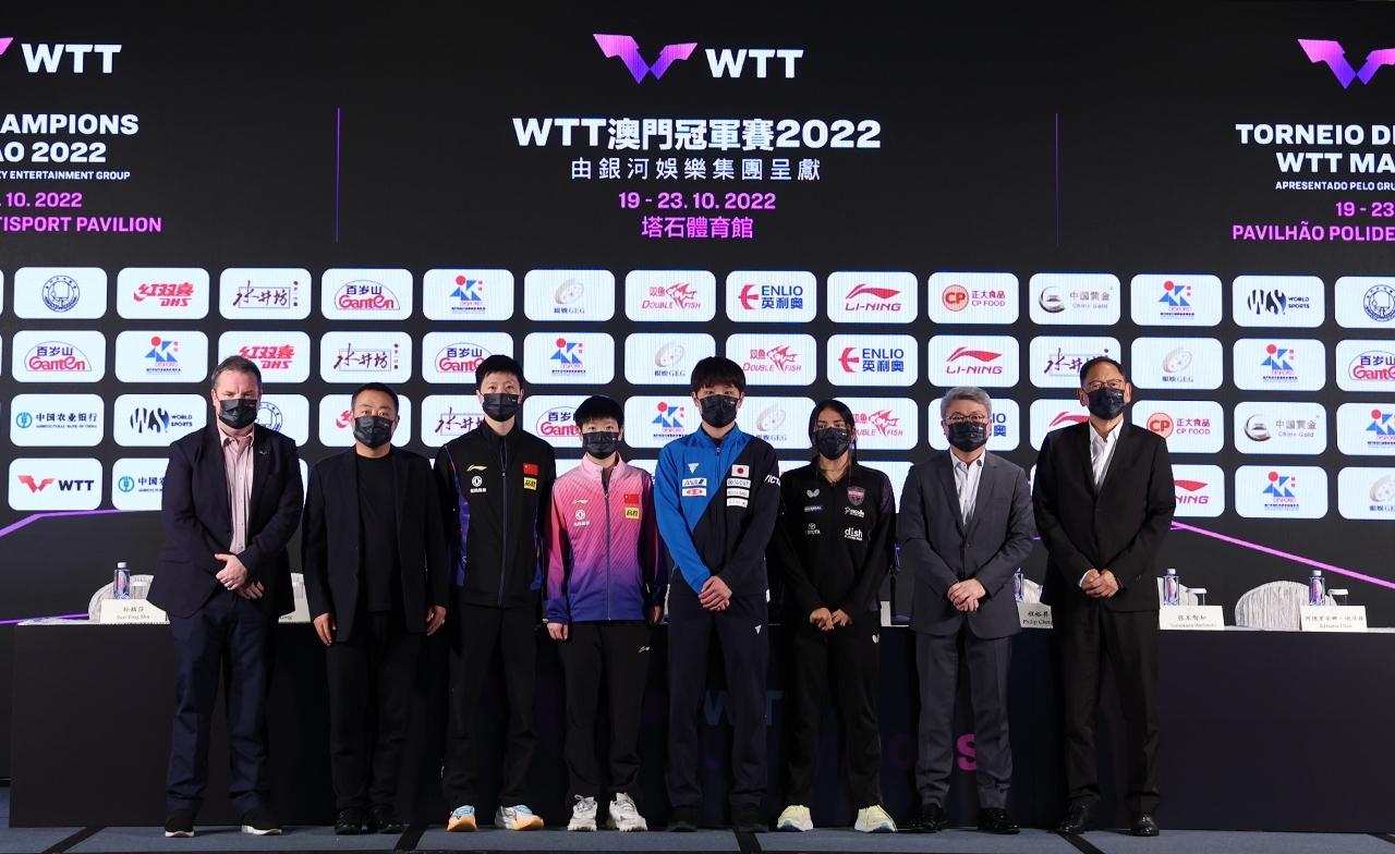 O Torneio de Campeões WTT Macau 2022, apresentado pelo Grupo Galaxy Entertainment, organizado pelo Instituto do Desporto do Governo da RAEM e pela World Table Tennis (WTT) e co-organizado pela Associação Geral de Ping-Pong de Macau, terá lugar de 19 a 23 no Pavilhão Polidesportivo do Tap Seac. E hoje (dia 18) realizou-se a Cerimónia de Sorteio, os convidados presentes incluíram: Presidente do Instituto do Desporto, Pun Weng Kun; Presidente do Conselho da WTT, Vice-Presidente da Federação Internacional de Ténis de Mesa e Presidente da Associação Chinesa de Ténis de Mesa, Liu Guoliang; Director da WTT e Director Executivo da Federação Internacional de Ténis de Mesa (ITTF), Steve Dainton; Director do Grupo Galaxy Entertainment, Philip Cheng, e os jogadores chineses, Ma Long e Sun Yingsha, o jogador japonês, Tomokazu Harimoto e a jogadora de Puerto Rico, Adriana Díaz.