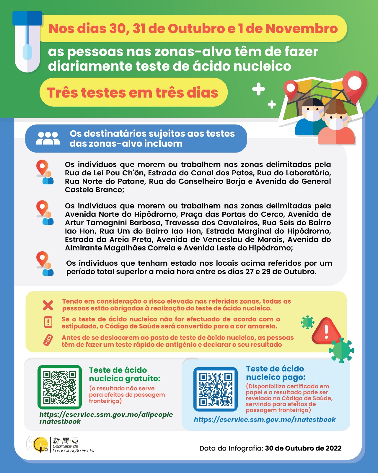 (Infografia) Testes diários de ácido nucleico nas zonas-alvo, nos dias 30, 31 de Outubro e 1 de Novembro