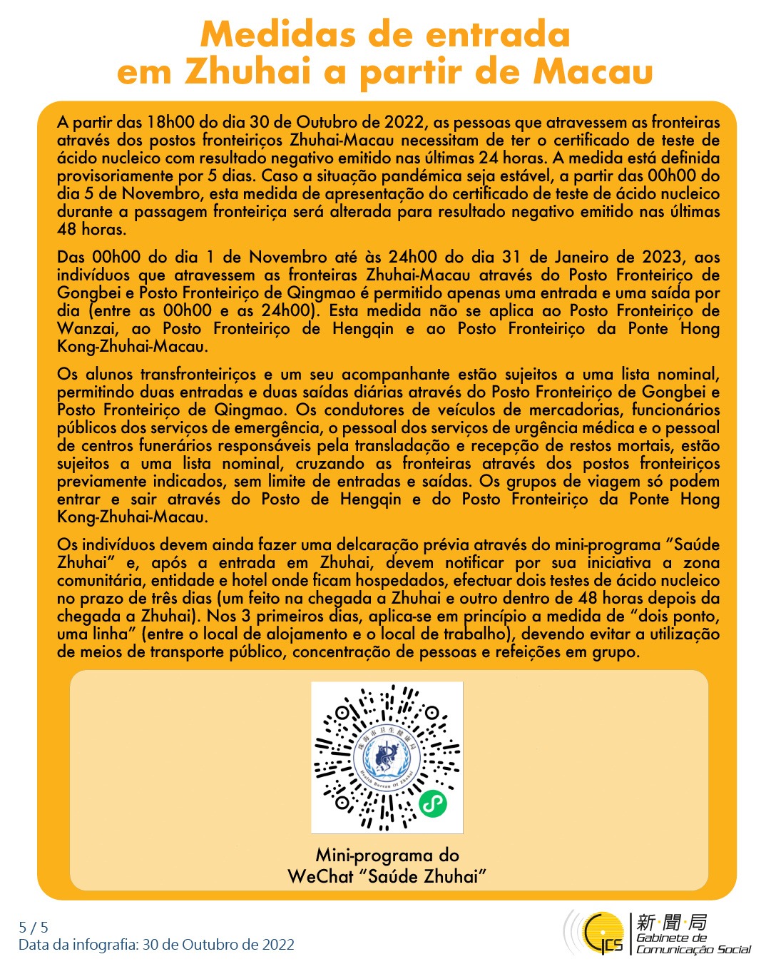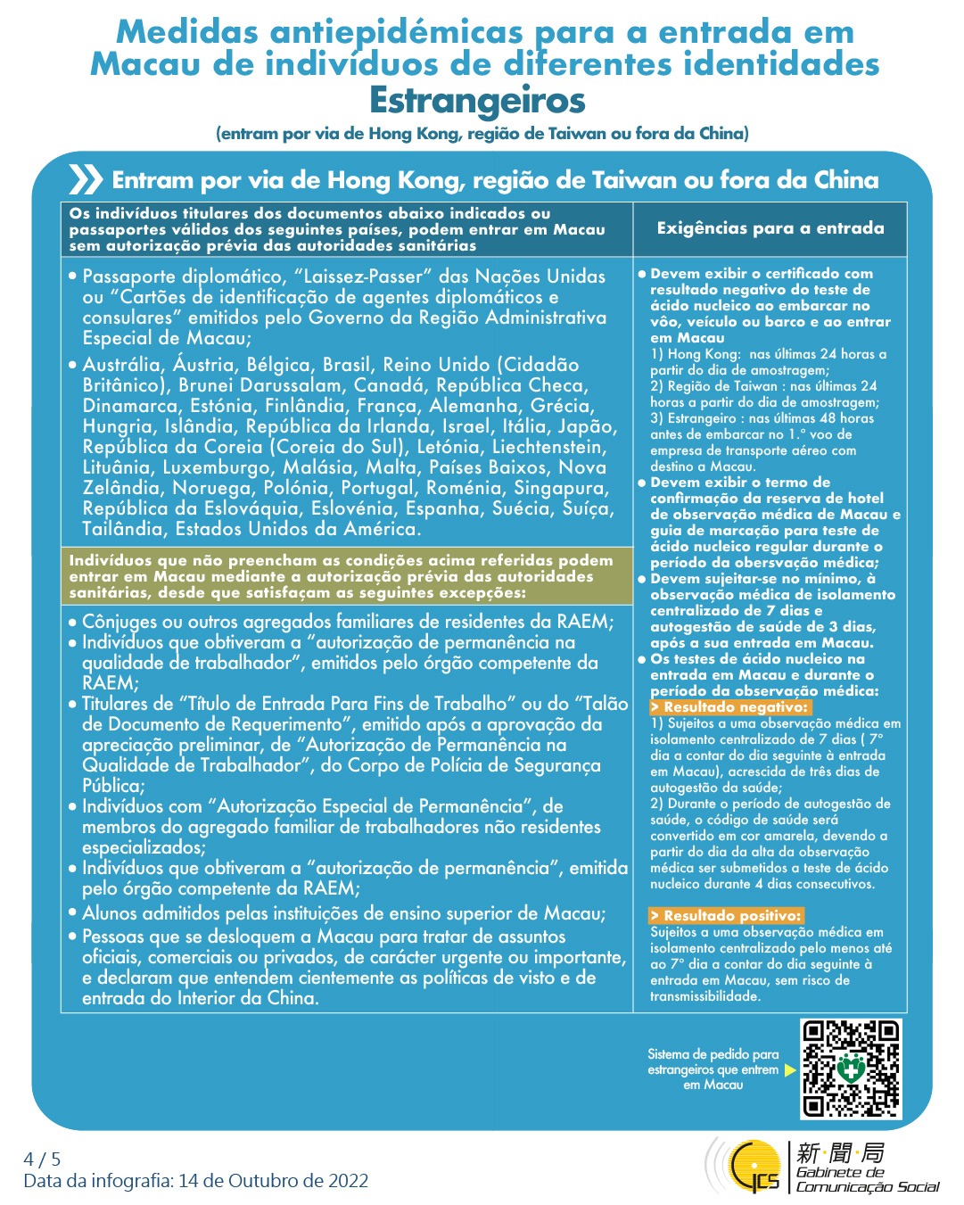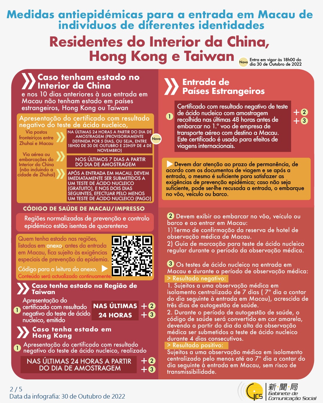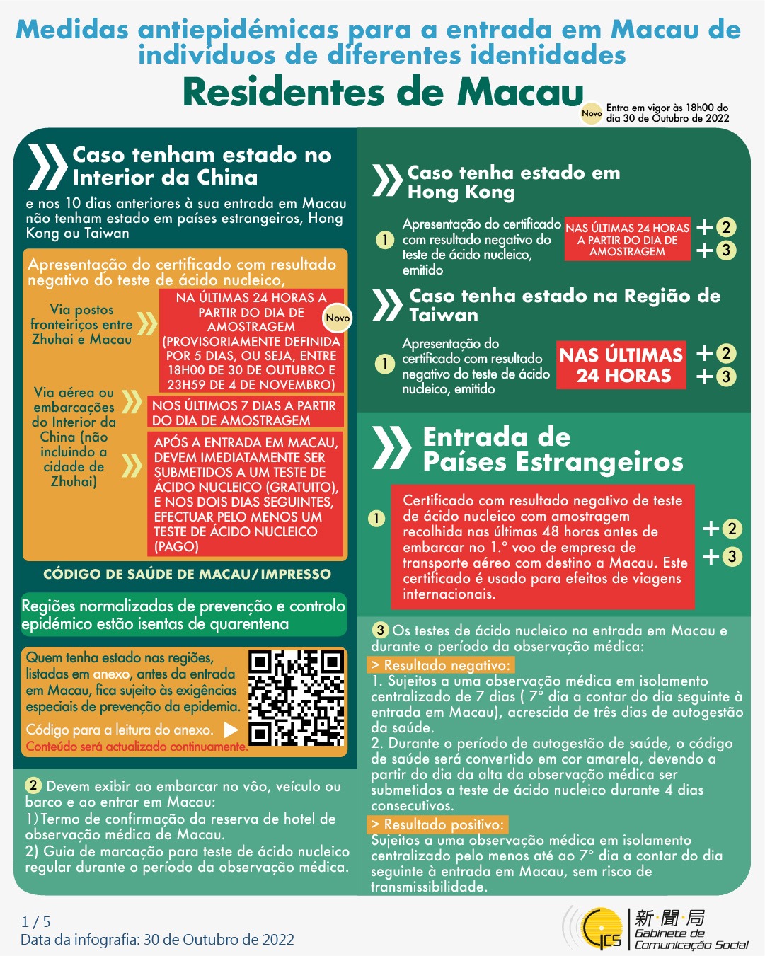 (Infografia) Medidas antiepidémicas para a entrada em Macau de indivíduos de diferentes identidades, actualizadas no dia 30 de Outubro de 2022