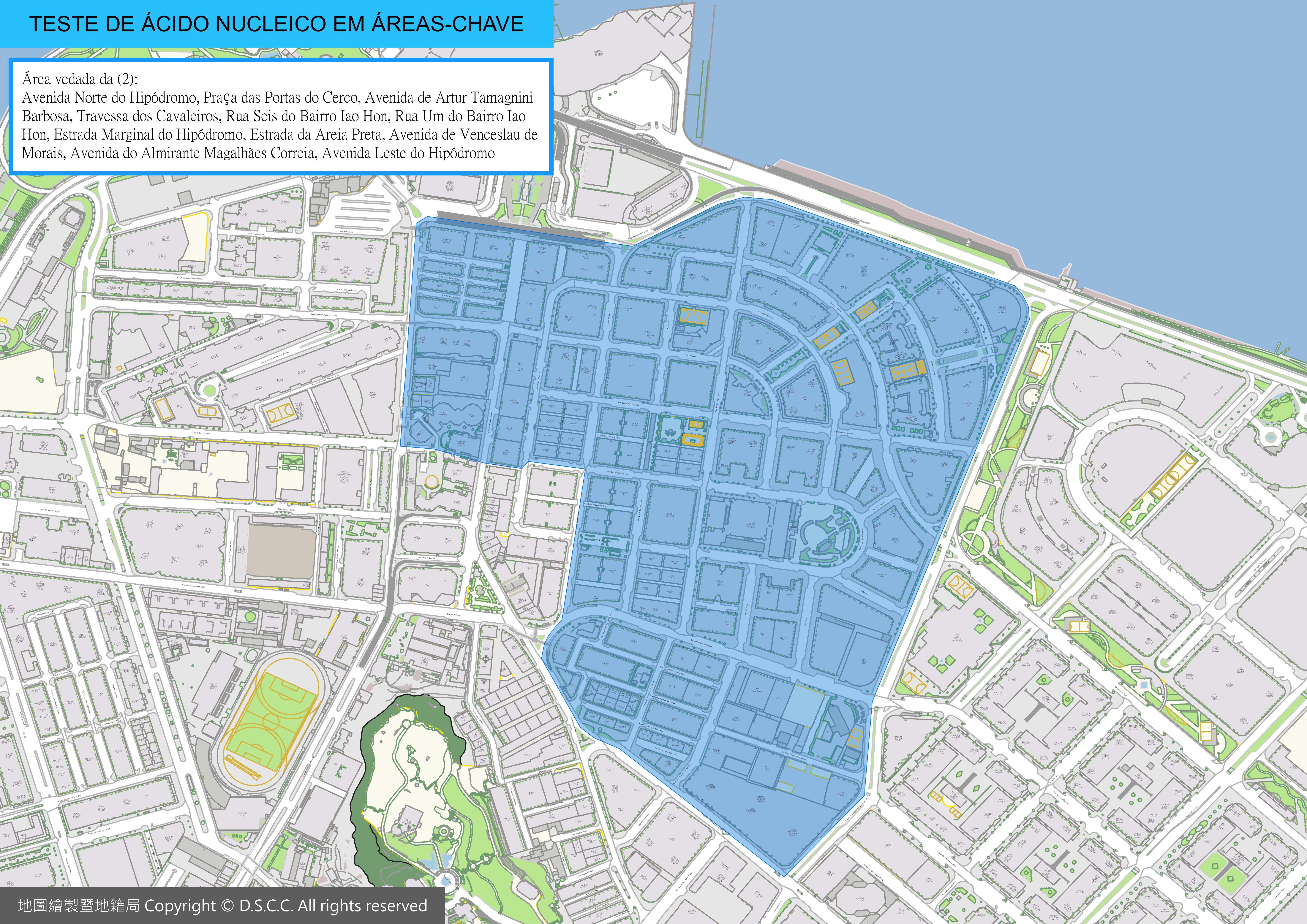 Tendo em conta as suas deslocações frequentes, são realizados, a partir do dia 30 de Outubro, às 15h00, os testes de ácido nucleico nas zonas-alvo, a fim de encontrar possíveis infectados da COVID-19, que possam estar dissimulados na comunidade em Macau. Os indivíduos das zonas-alvo devem ser submetidos a teste de ácido nucleico, uma vez por dia, nos dias 30 e 31 de Outubro, bem como no dia 01 de Novembro.