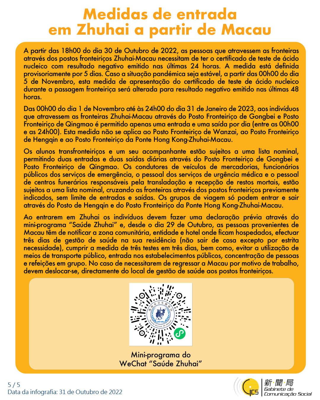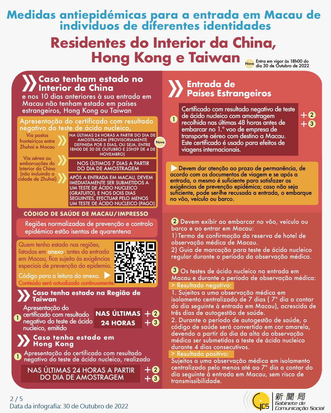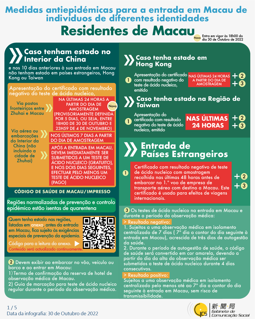 (Infografia) Medidas antiepidémicas para a entrada em Macau de indivíduos de diferentes identidades, actualizadas no dia 31 de Outubro de 2022