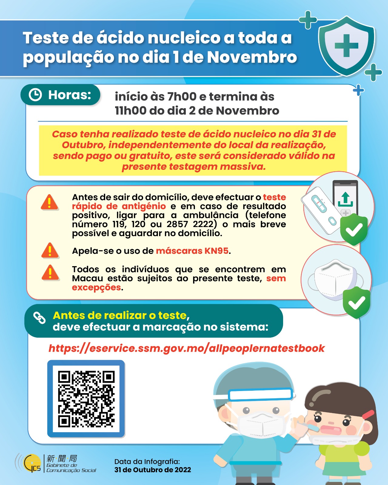 • Teste de ácido nucleico para toda a população no dia 1 de Novembro