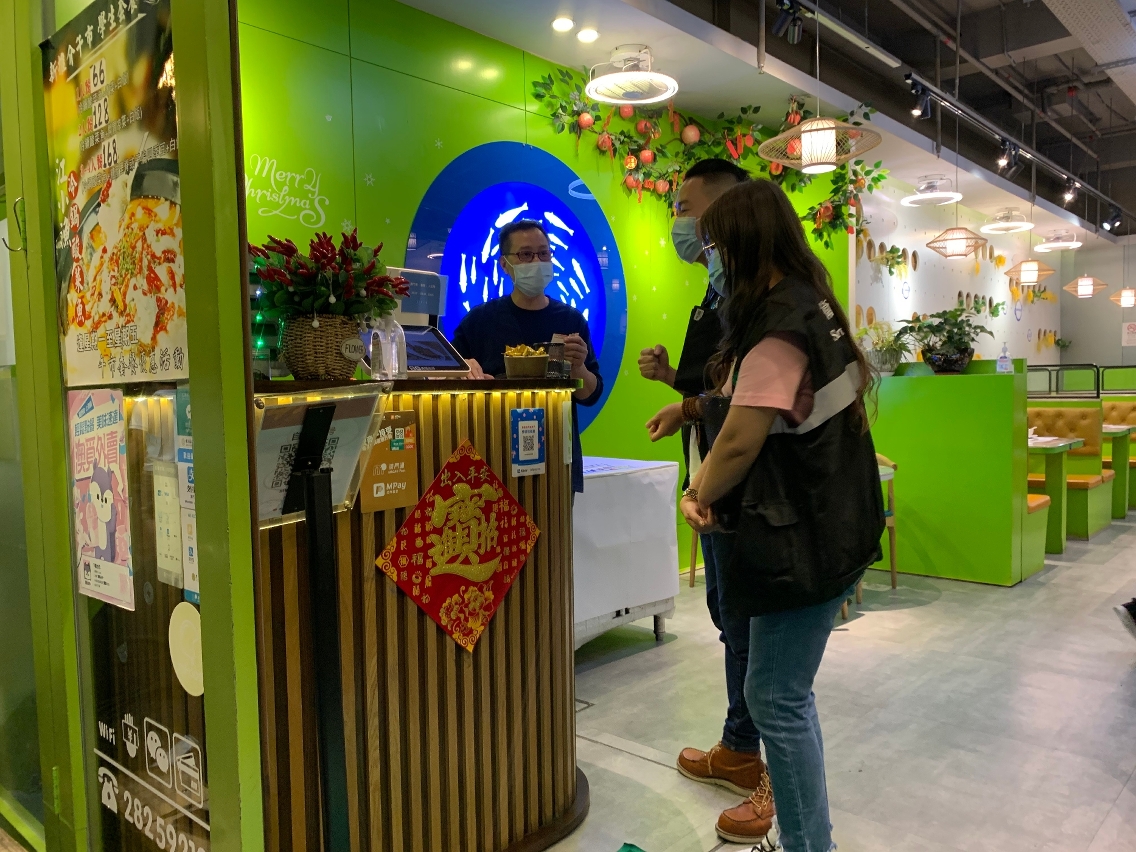 Em articulação com a campanha de sensibilização sobre a prevenção da epidemia, os Serviços de Saúde enviaram inspectores sanitários para toda a comunidade de Macau, no sentido de relembrar os estabelecimentos comerciais para o cumprimento rigoroso das medidas de prevenção, ou seja, a todos os indivíduos que entrem nesses locais, deve ser medida a temperatura corporal, exigida a apresentação do “Código de Saúde de Macau” e a leitura do Código QR do estabelecimento.