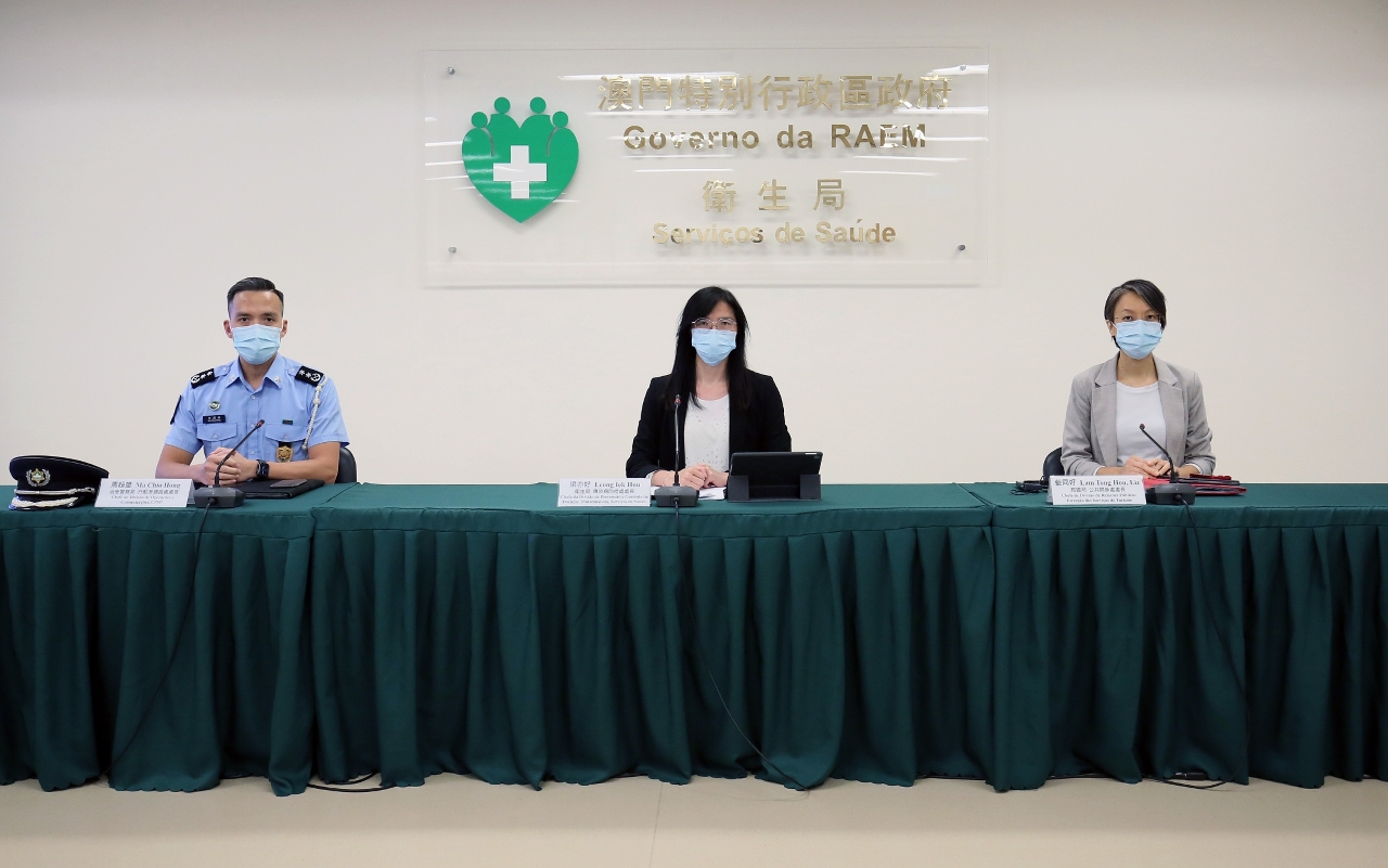 Estiveram presentes na conferência de imprensa: a Chefe da Divisão de Prevenção e Controlo de Doenças Transmissíveis do CDC dos Serviços de Saúde, Dr.ª Leong Iek Hou e o Chefe da Divisão de Operações e Comunicações do Corpo de Polícia de Segurança Pública, Dr. Ma Chio Hong e a Chefe da Divisão de Relações Públicas da Direcção dos Serviços de Turismo, Dr.ª Lam Tong Hou.