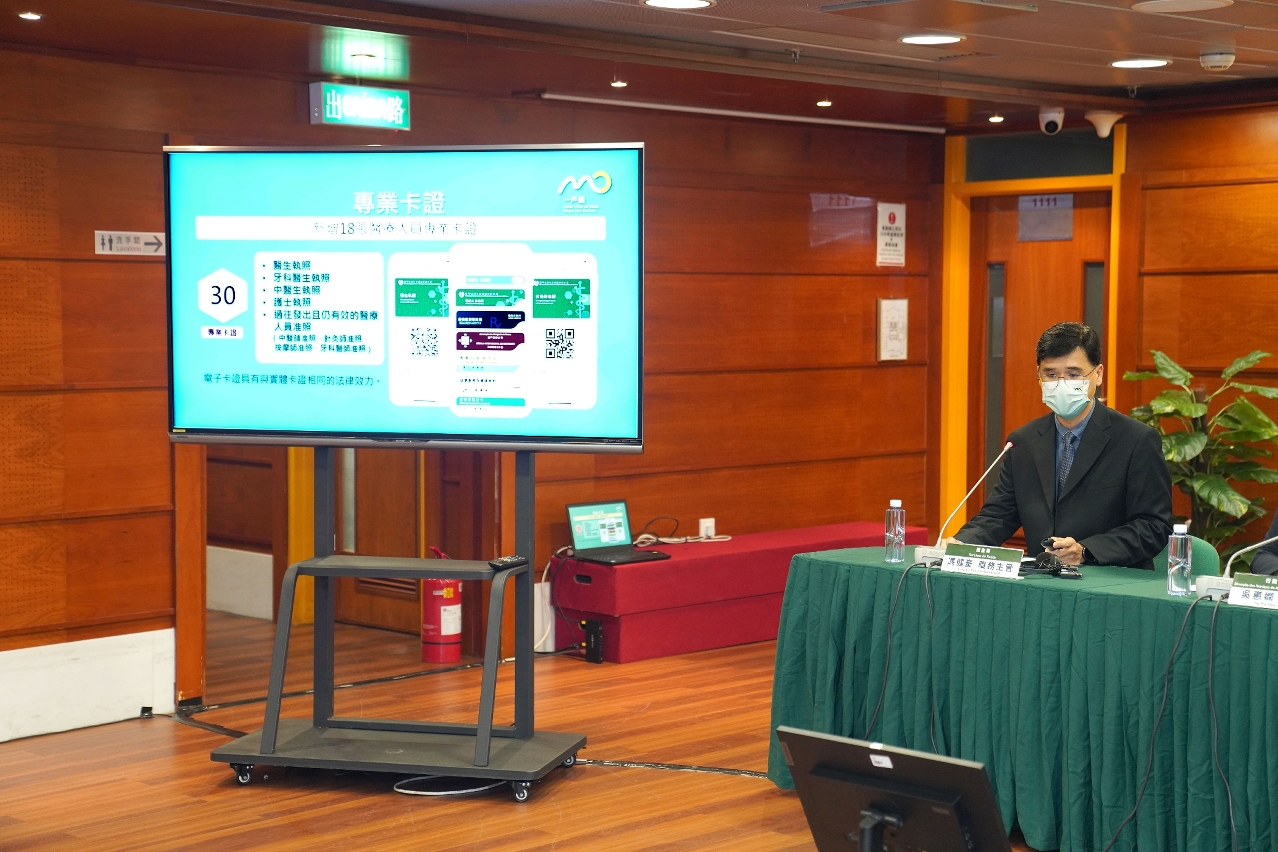 Serão adicionados na carteira electrónica da categoria de “Uso profissional” da Conta Única de Macau 18 licenças dos profissionais de saúde, incluindo as que estão previstas na Lei n.º 18/2020, tais como a licença de médico, médico dentista, médico de medicina tradicional chinesa e de enfermeiro, assim como, no Decreto-Lei n.º 84/90/M, nomeadamente as licenças de mestre de medicina tradicional chinesa, acupuncturista, massagista e odontologista. Os respectivos cartões digitais também podem ser utilizados para exibir perante as autoridades e os cidadãos, as licenças dos profissionais de saúde e consultar oportunamente os seus dados de registo. Por enquanto, somando os cartões profissionais electrónicos que já foram lançados, existem um total de 30 cartões profissionais num universo de 42 tipos de áreas profissionais que já foram digitalizados.