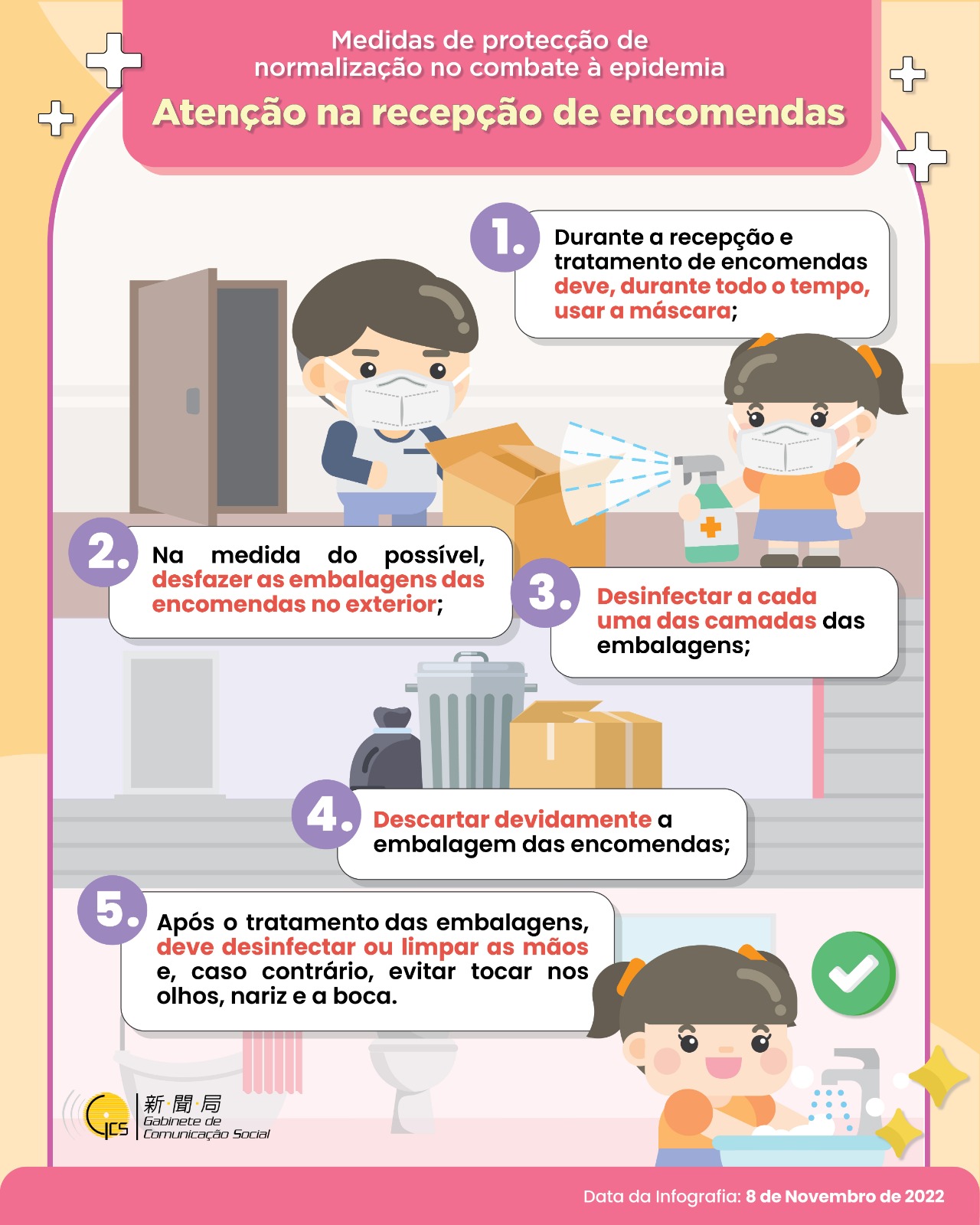 Infografia - Medidas de protecção de normalização no combate à epidemia - Atenção na recepção de encomendas