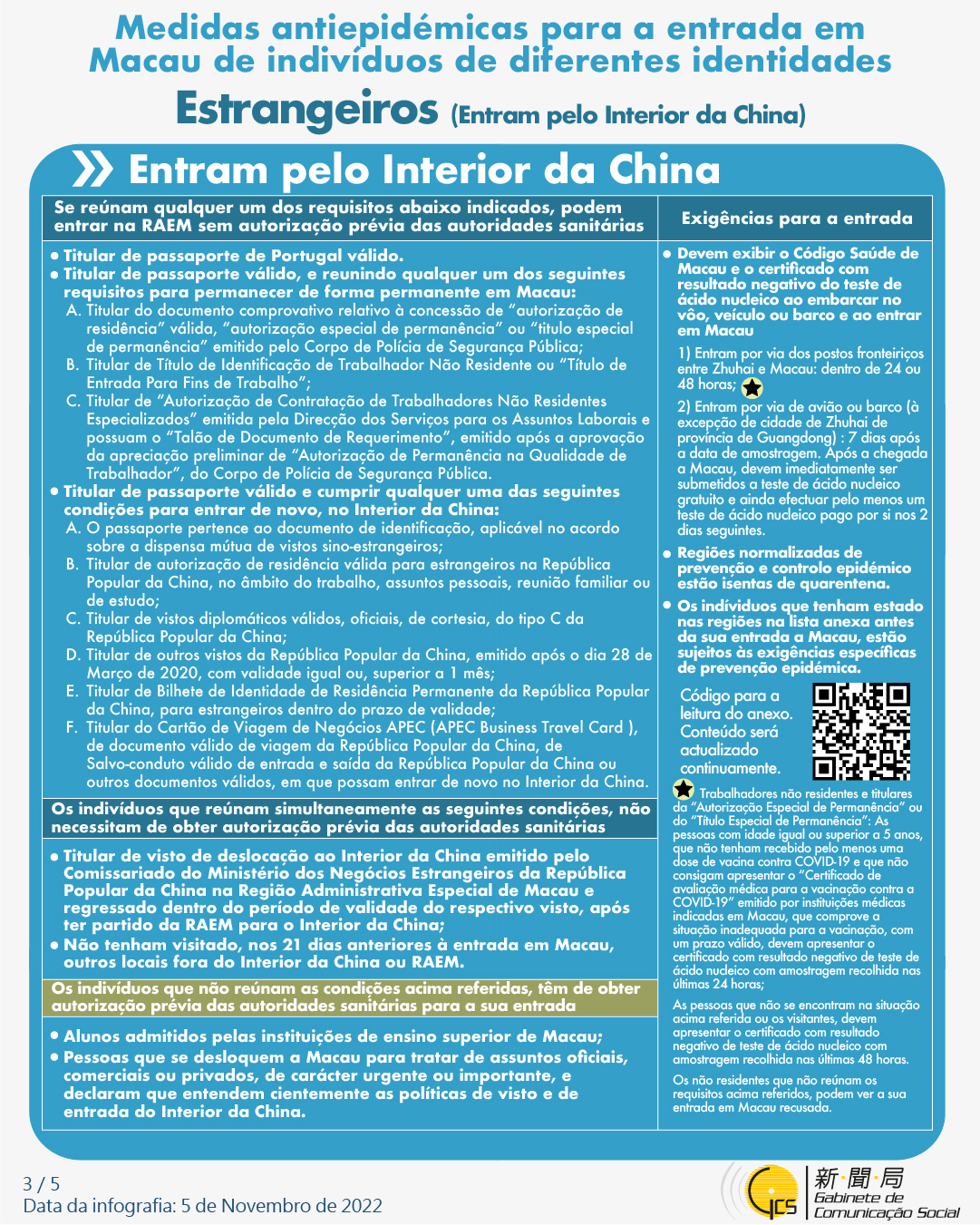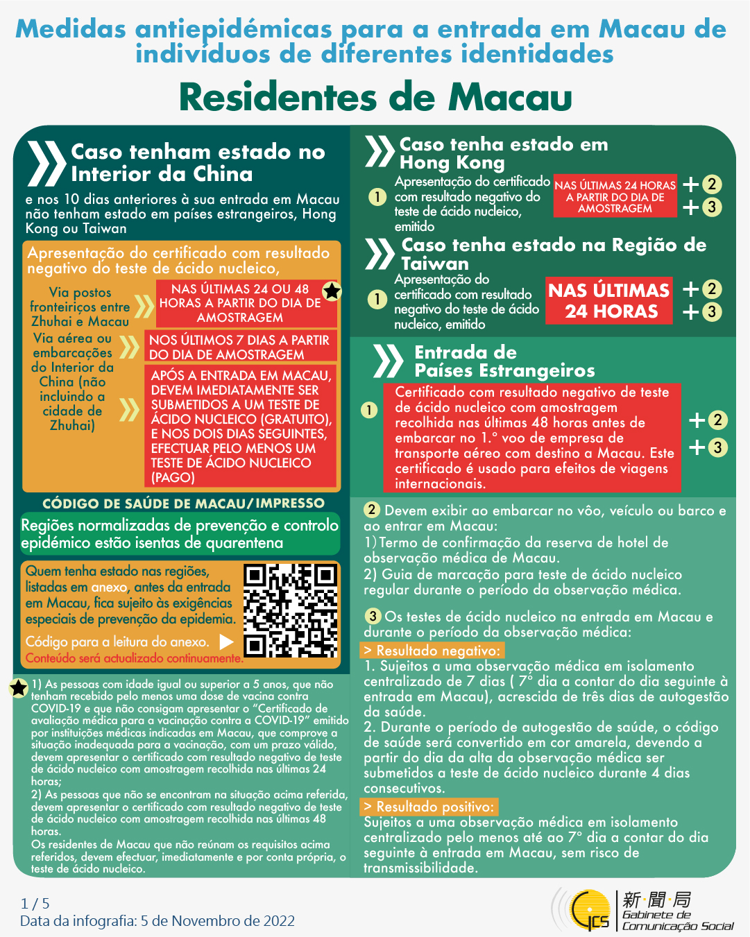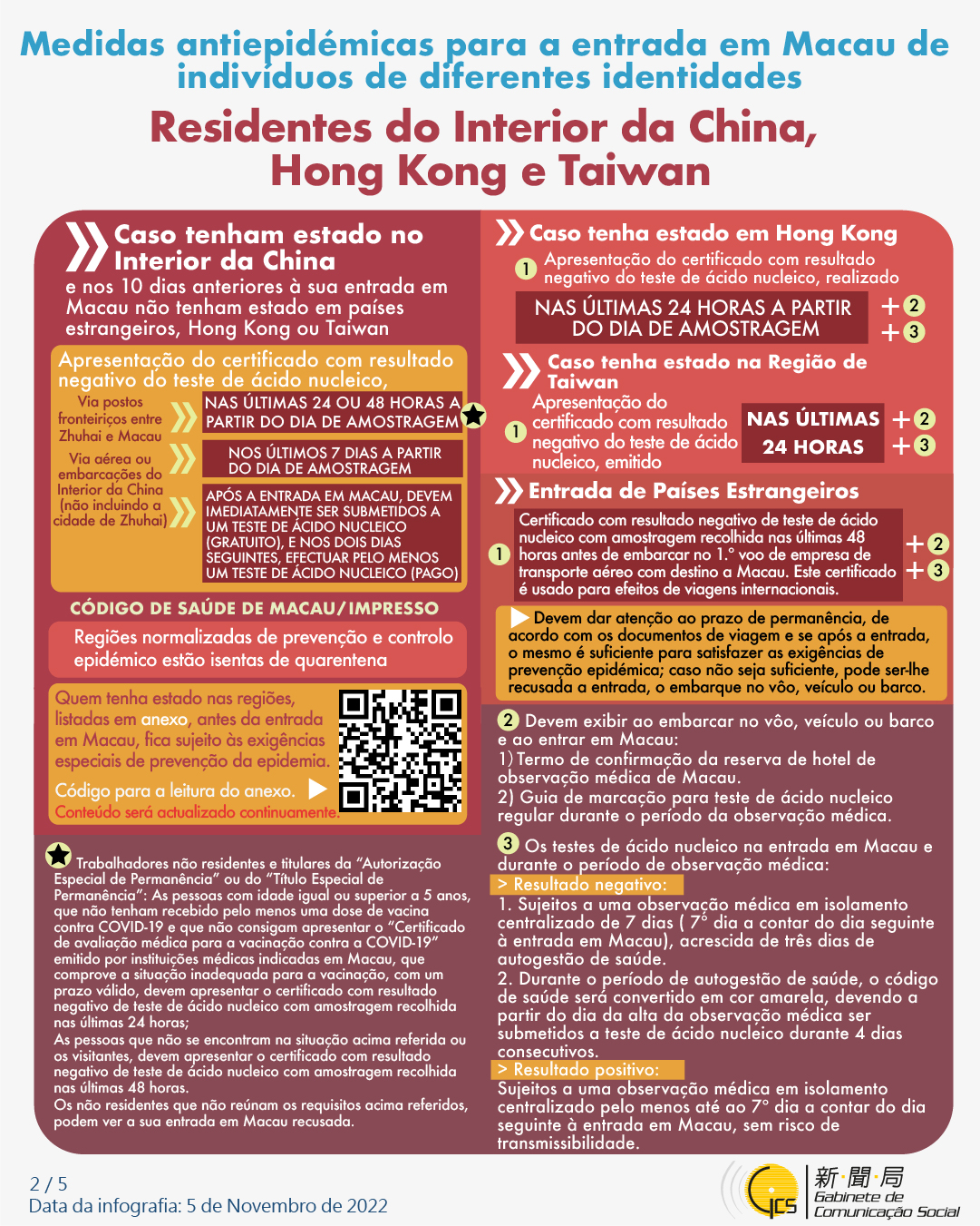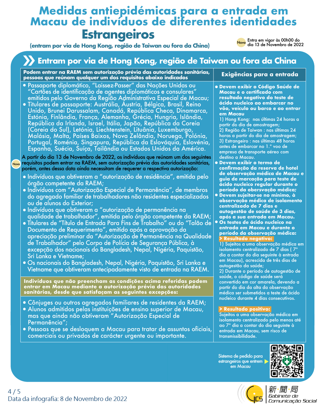 (Infografia) Medidas antiepidémicas para a entrada em Macau de indivíduos de diferentes identidades, actualizadas no dia 8 de Novembro de 2022