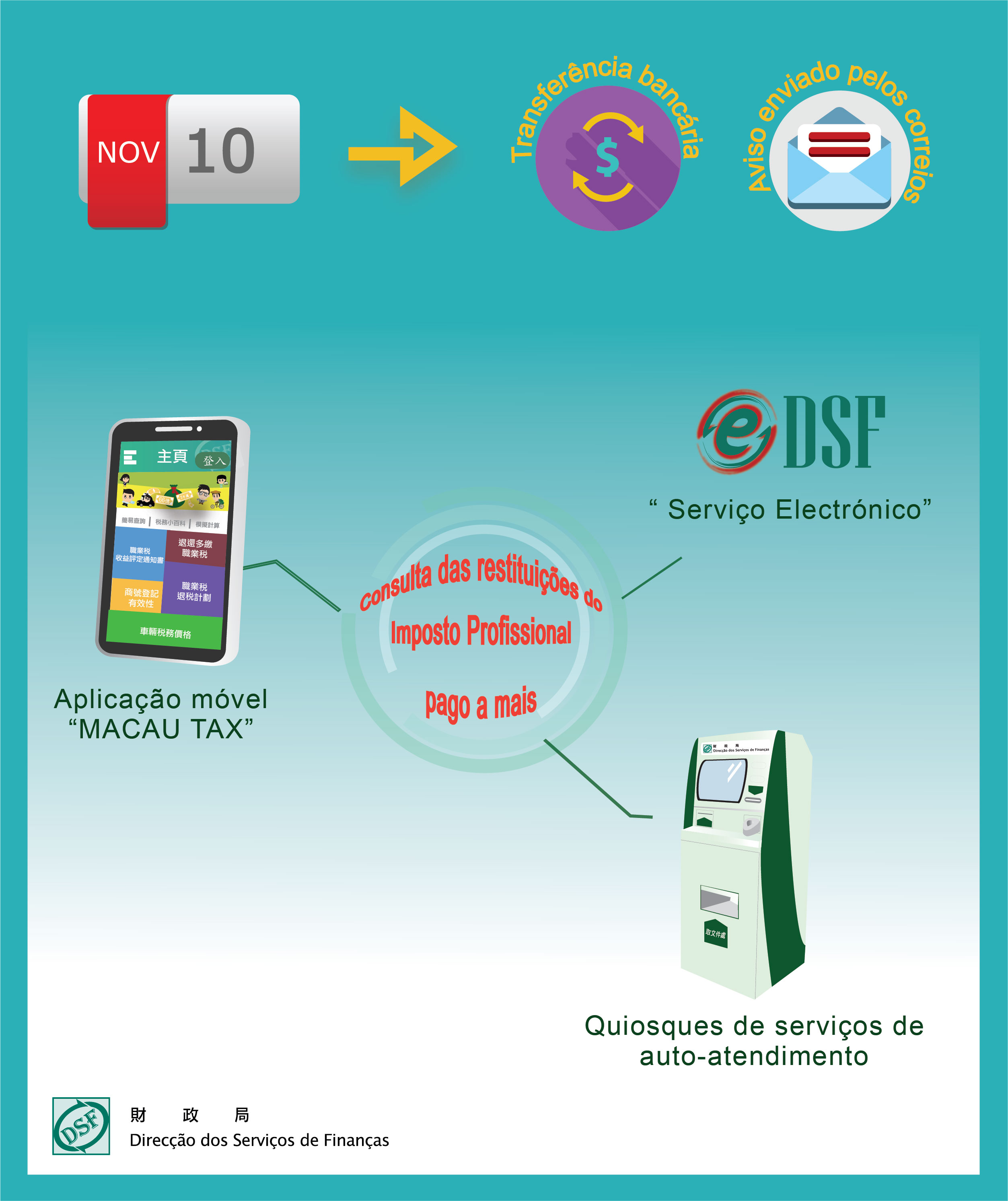 A DSF vem lembrar os contribuintes do Imposto Profissional, pago a mais, do exercício de 2021, que podem consultar de imediato os dados respeitantes às suas restituições do Imposto Profissional, através dos meios electrónicos da DSF incluindo: o sistema do “Serviço Electrónico”, a aplicação móvel “Macau Tax”, e ainda, os quiosques de serviço de auto-atendimento destes Serviços.