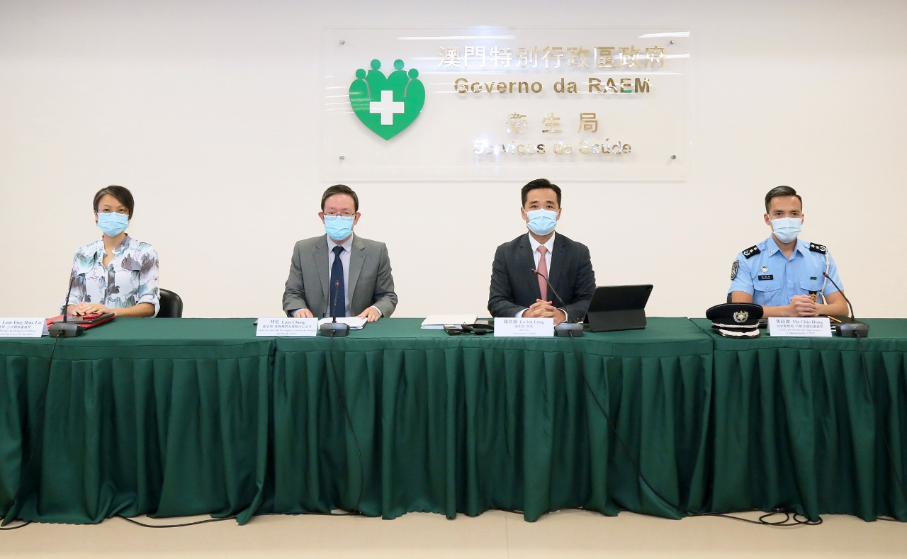 Estiveram presentes na conferência de imprensa: o Director dos Serviços de Saúde, Dr. Lo Iek Long, o Chefe do Centro de Prevenção e Controlo da Doença dos Serviços de Saúde, Dr. Lam Chong, o Chefe da Divisão de Operações e Comunicações do Corpo de Polícia de Segurança Pública, Dr. Ma Chio Hong e a Chefe da Divisão de Relações Públicas da Direcção dos Serviços de Turismo, Dr.ª Lam Tong Hou.