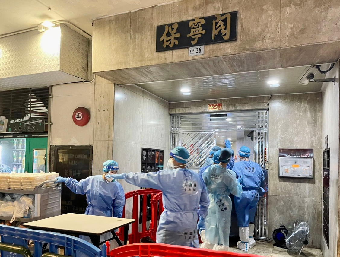 O Instituto para os Assuntos Municipais (IAM), o Corpo de Polícia de Segurança Pública (CPSP) e o Instituto de Acção Social (IAS) constituíram o Grupo de Apoio à Subsistência, o qual iniciou os trabalhos de averiguação aos moradores-alvo do edifício da Zona de Código de Saúde de Cor Vermelha para inteirar-se da quantidade real de moradores e das suas necessidades básicas, de forma a fornecer os artigos de subsistência. Ao mesmo tempo, tem-se empenhado em apoiar os Serviços de Saúde (SSM) a realizar, de forma ordenada, os trabalhos de amostragem de ácido nucleico viral a todos os moradores, divididos em grupo, no edifício vedado.