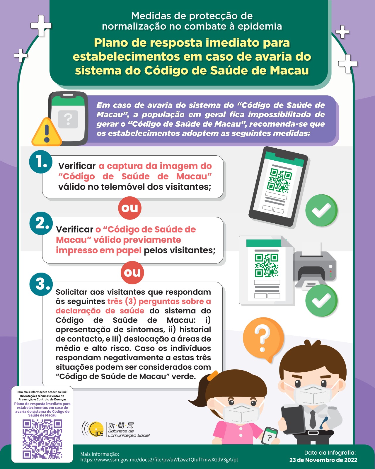 (Infografia) Medidas de protecção de normalização no combate à epidemia – Plano de resposta imediato para estabelecimentos em caso de avaria do sistema do Código de Saúde de Macau