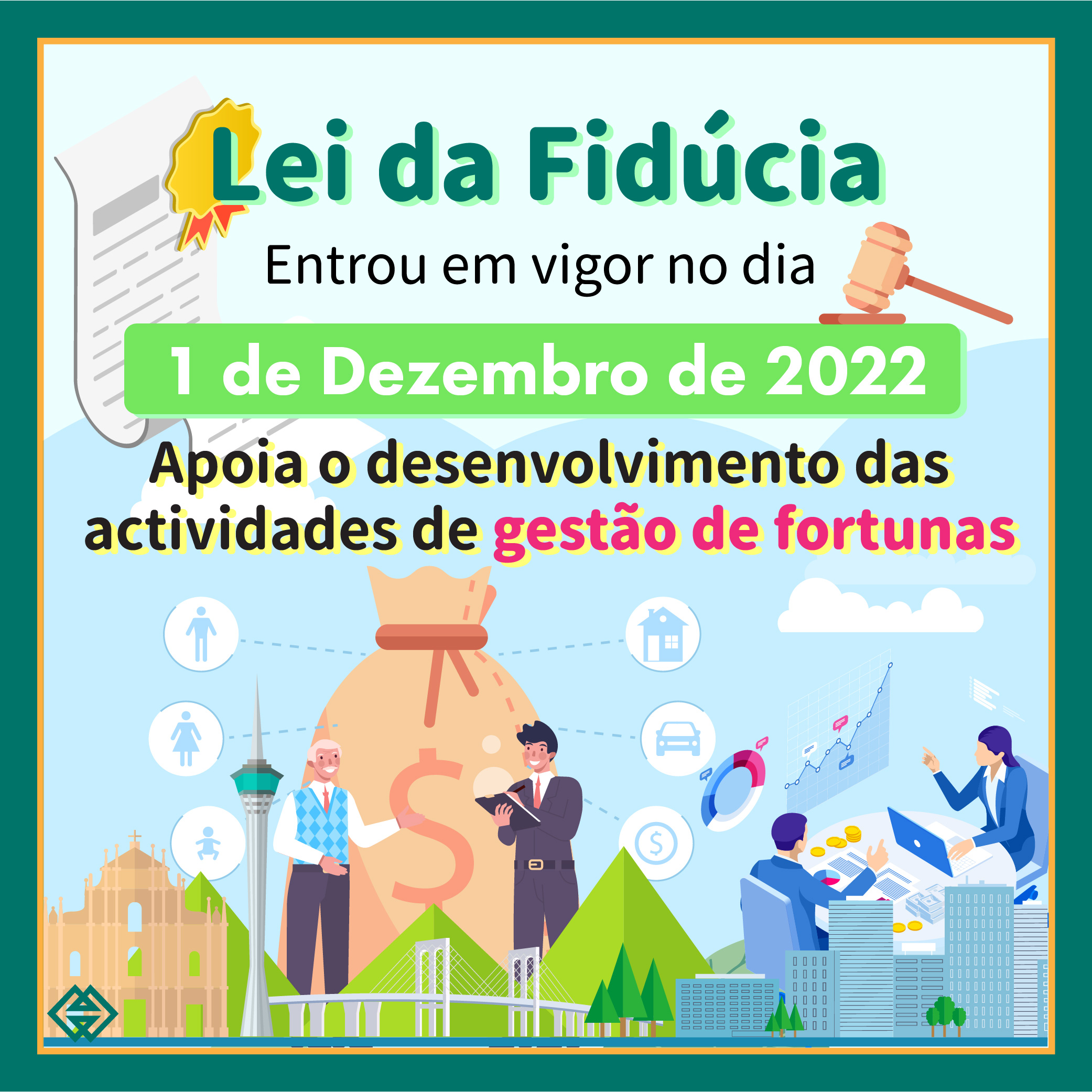 A Lei n.o 15/2022 (Lei da Fidúcia) que entrou em vigor no dia 1 de Dezembro que estabelece o regime de fidúcia da RAEM, permitindo que a generalidade da população possa gerir os seus patrimónios mediante a fidúcia através das instituições financeiras, podendo as instituições financeiras criar fundos de investimento e produtos financeiros mediante a fidúcia, no sentido de prosseguir determinadas finalidades no que respeita à preservação, à valorização e ao planeamento de sucessão de patrimónios dos clientes, alargando a leque das actividades de gestão de fortunas de Macau.