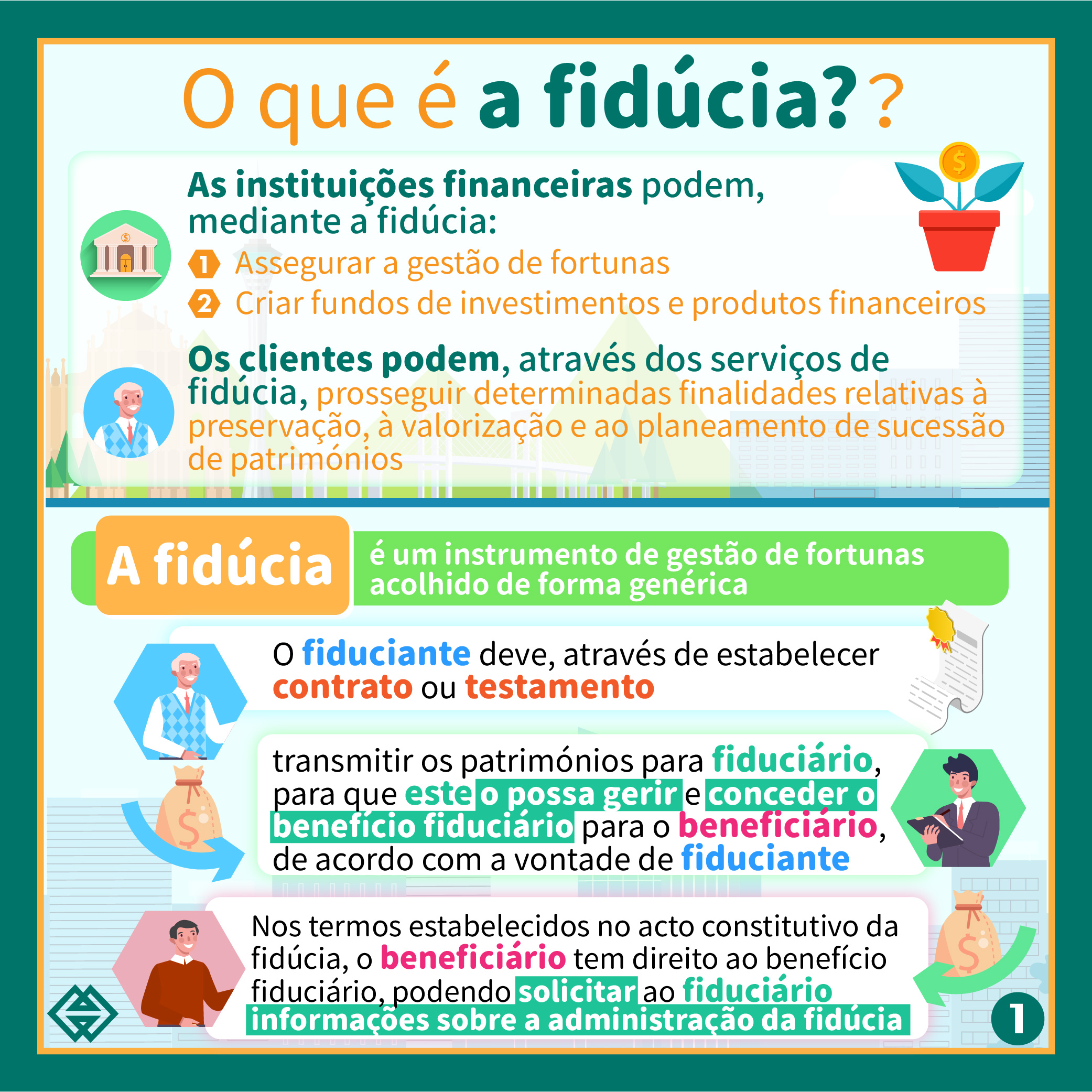 A “Lei da Fidúcia” estabelece a definição, a criação, os patrimónios fiduciários, as condições e os deveres de fiduciário, bem como a garantia de beneficiário. Sendo a fidúcia um instrumento de gestão de património acolhido de forma genérica, o fiduciante deve transmitir os patrimónios fiduciários para fiduciário, para que este o possa gerir e conceder benefício fiduciário para o beneficiário, de acordo com a vontade de fiduciante. Nos termos estabelecidos no acto constitutivo da fidúcia, o beneficiário tem direito ao benefício fiduciário, podendo solicitar ao fiduciário informações sobre a administração da fidúcia.