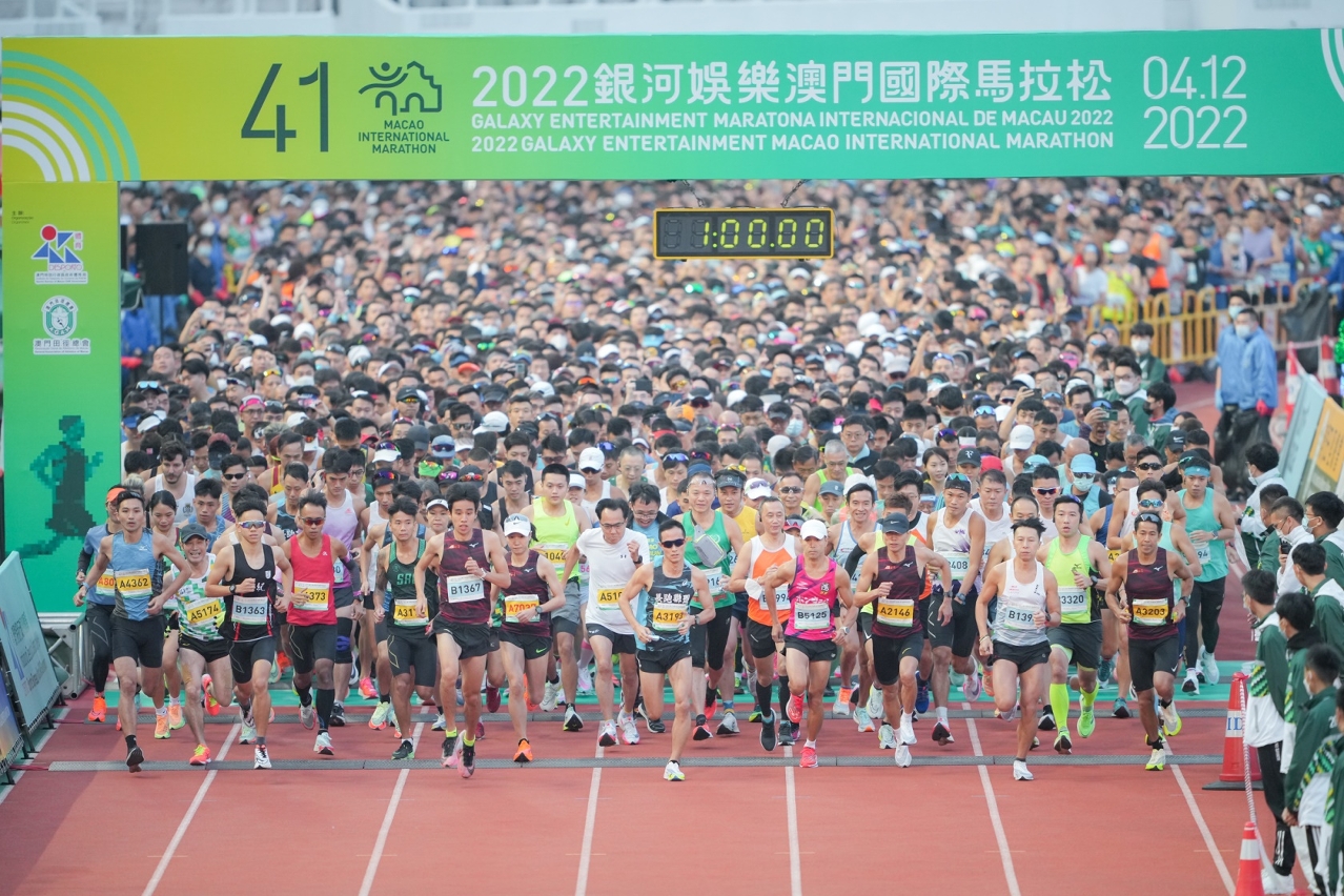 Realizou-se hoje, dia 4, a “Galaxy Entertainment Maratona Internacional de Macau 2022”, com sucesso, uma organização conjunta entre o Instituto do Desporto e a Associação Geral de Atletismo de Macau, com o patrocínio em título pela Galaxy Entertainment Group, que teve lugar no Estádio do Centro Desportivo Olímpico. Os atletas da China Guan Yousheng e Li Meizhen foram, respectivamente, campeões da classificação geral no escalão masculino e feminino da prova da maratona. Os campeões na categoria de atletas de Macau foram Chan Kai Un no escalão masculino e Wu Yang Yang no escalão feminino.