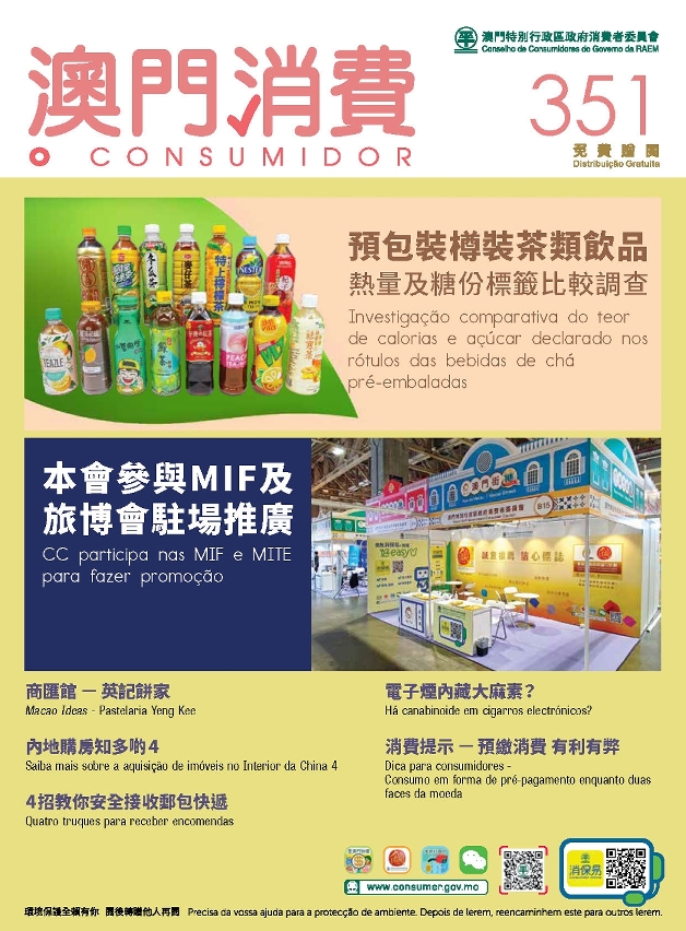 O boletim “O Consumidor” n.º 351 publica o relatório de teste de teor de calorias e açúcar declarado nos rótulos das bebidas de chá pré-embaladas, bem como apresenta as precauções sobre a aquisição de imóveis no Interior da China na secção “Conhecer mais sobre a aquisição de imóveis no Interior da China”.