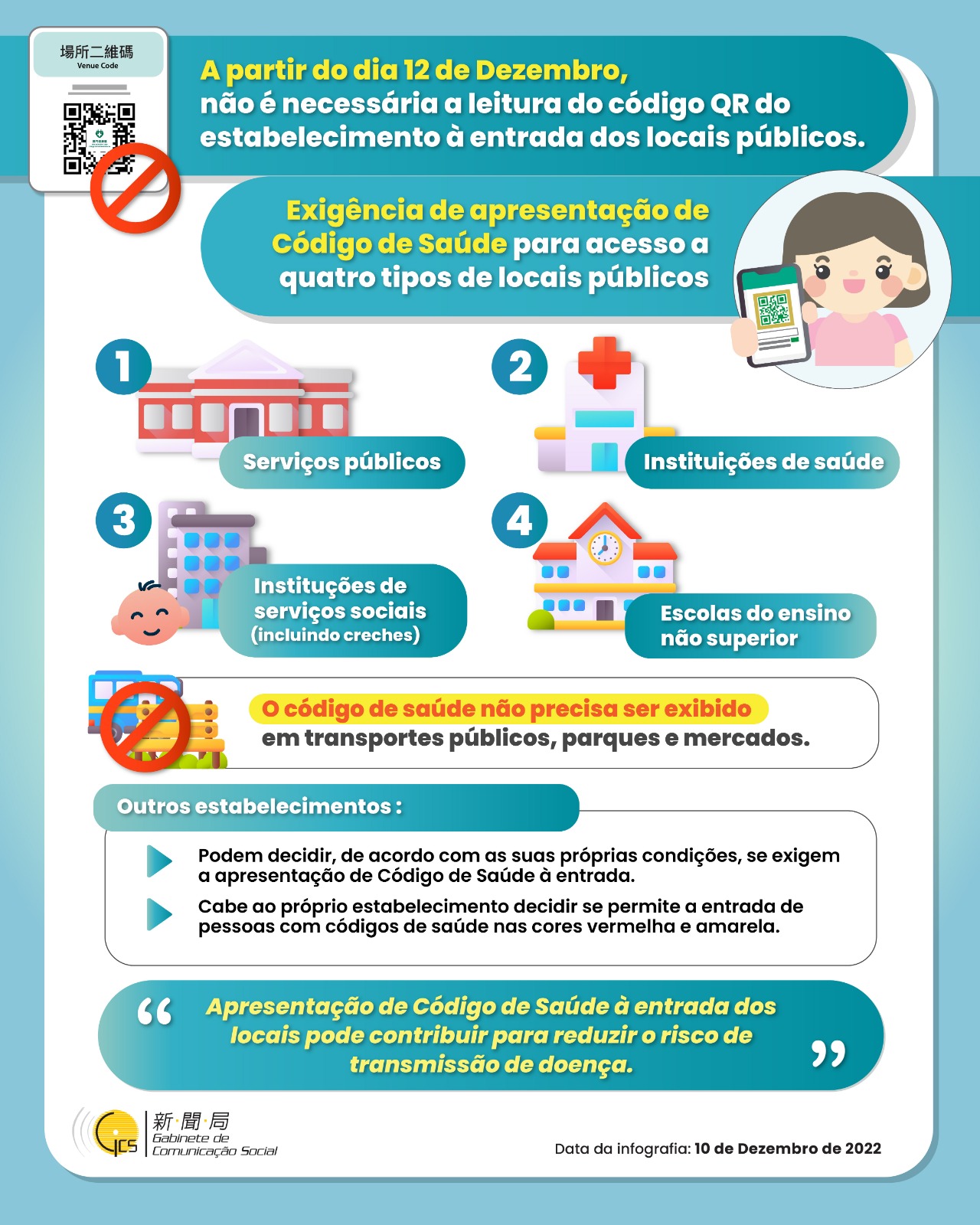 • Não é necessária a leitura do código QR do estabelecimento à entrada dos locais públicos