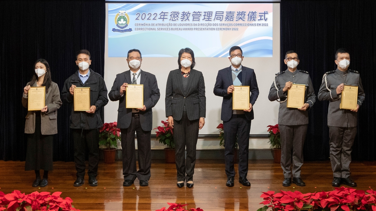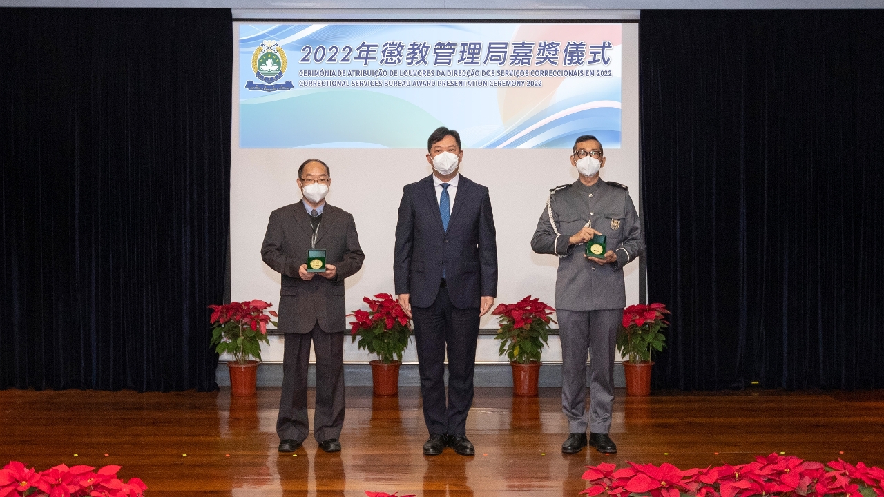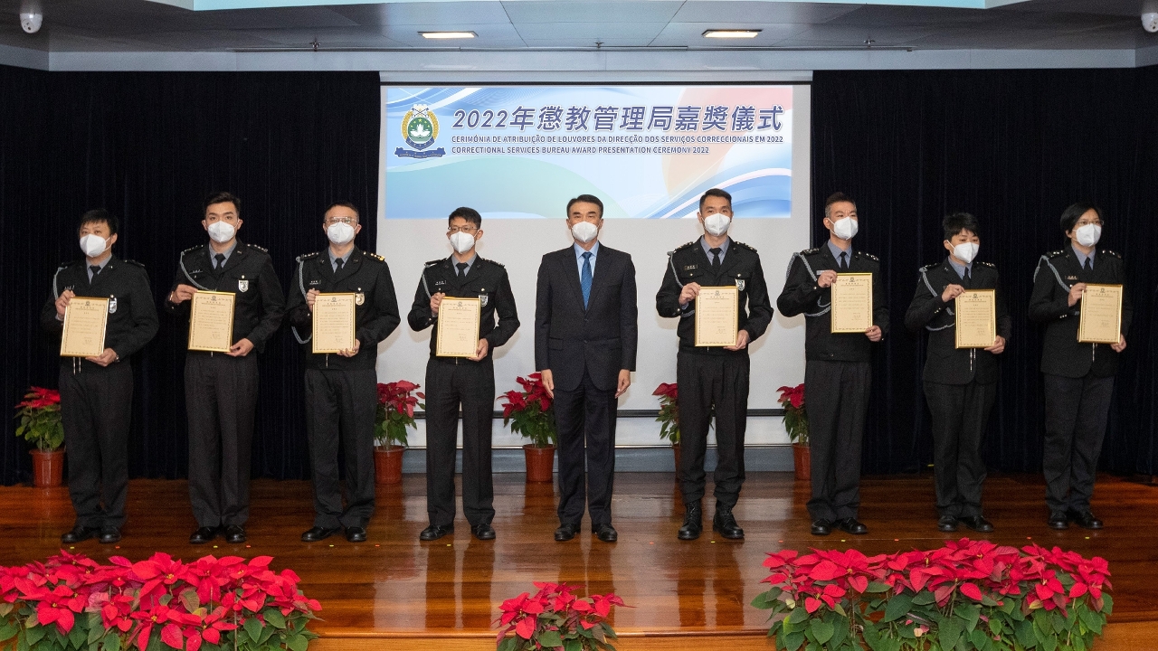 Na manhã de 16 de Dezembro, a Direcção dos Serviços Correccionais realizou a “Cerimónia de Atribuição de Louvores 2022” no Salão de Cerimónia da Escola Superior das Forças de Segurança de Macau, para elogiar os trabalhadores e as equipas pelo desempenho excelente ao longo do ano, e atribuir troféus por aposentação e medalhas por longo tempo de serviço aos trabalhadores para inspirar a moral e aumentar a coesão. A cerimónia foi presidida pela Chefe do Gabinete de Secretário para a Segurança, Cheong Ioc Ieng.