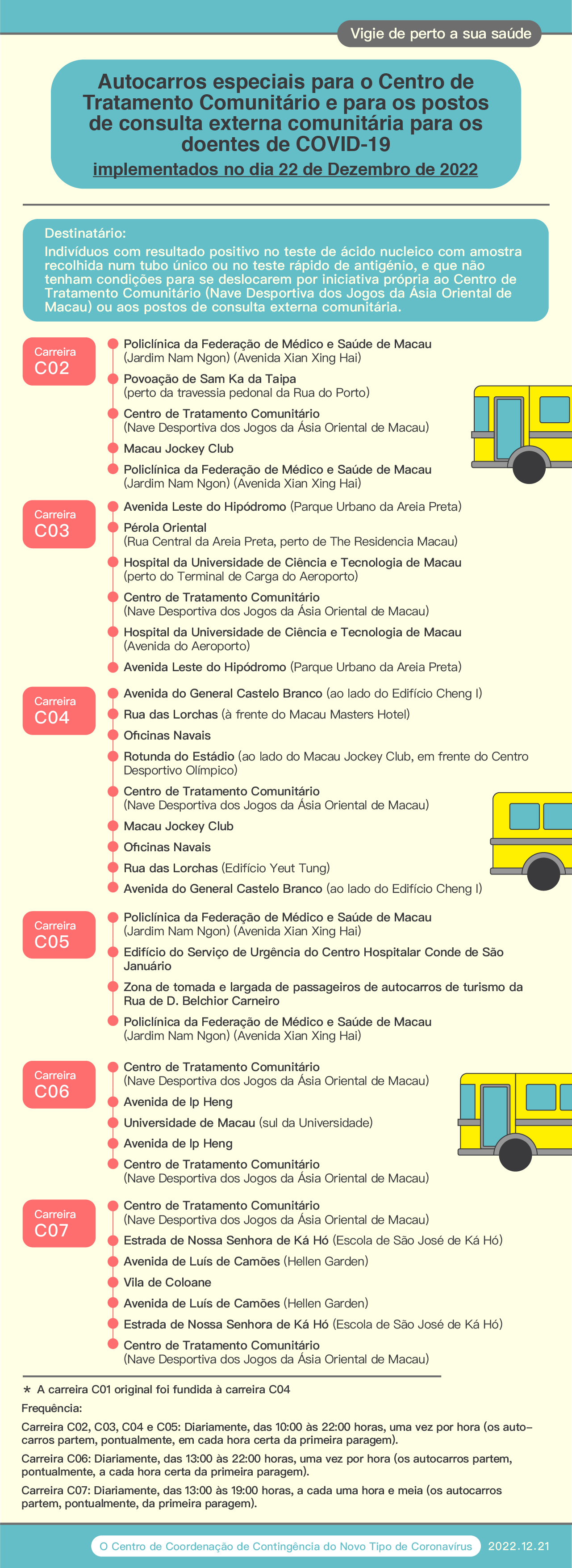 Autocarros especiais para o Centro de Tratamento Comunitário e para os postos de consulta externa comunitária para os doentes de COVID-19 (implementados no dia 22 de Dezembro de 2022)