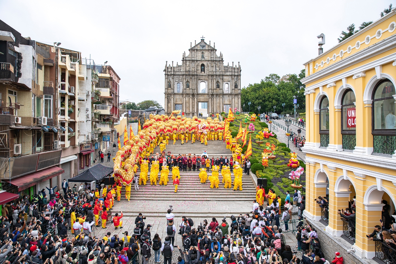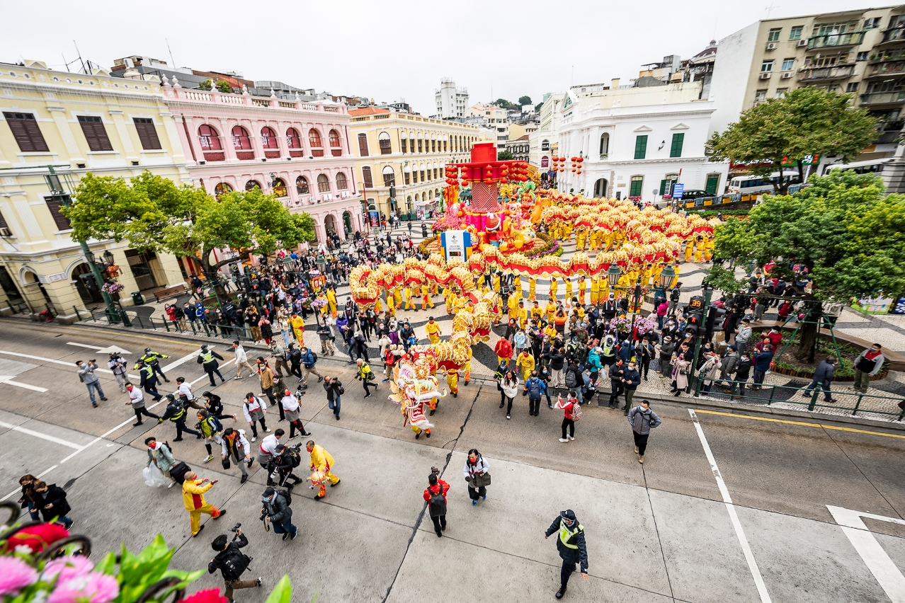 No primeiro dia do Ano Novo Lunar (22 de Janeiro), a DST realiza o desfile do dragão dourado gigante para receber o Ano Novo. O evento irá levar o Deus da Fortuna, os três Deuses da Felicidade, Longevidade e Prosperidade, o Coelho do Zodíaco Chinês, Par de Meninos, a mascote do turismo de Macau “Mak Mak” e grupos de dança de dragão e do leão, entre outros, a percorrer os diferentes locais da cidade, para desejar um bom Ano Novo aos residentes e visitantes.