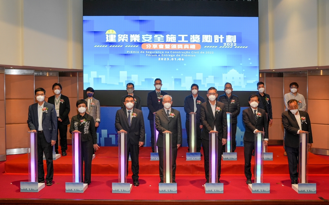 O fórum e cerimónia de atribuição dos prémios do programa “Prémio de Segurança na Construção Civil 2022”, organizado pela Direcção dos Serviços para os Assuntos Laborais (DSAL), teve lugar no dia 6 de Janeiro, à tarde, na Sala Lótus do 5.º andar do Edifício World Trade Center. Nesta edição, que obteve uma resposta muito encorajadora, tanto o número de obras como o número de trabalhadores participantes bateram o recorde, com um total de 56 obras, pertencentes a 47 estaleiros e 35 empresas de construção, bem como 70 profissionais de gestão de segurança e cerca de 200 trabalhadores da construção.