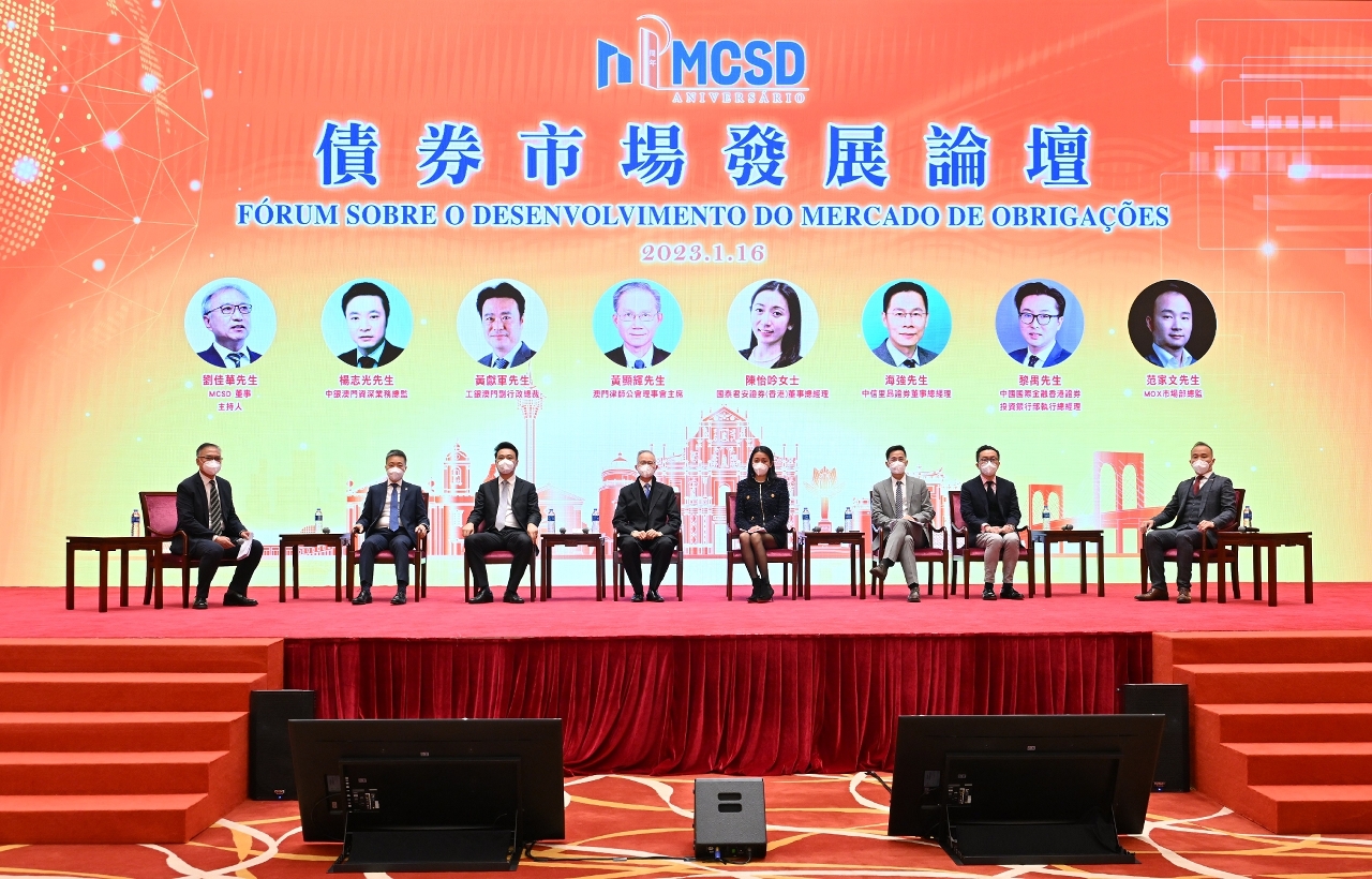 A Autoridade Monetária de Macau e a Central de Depósito e Liquidação de Valores Mobiliários de Macau Sociedade Unipessoal Limitada (MCSD) organizaram um evento com o objectivo de comemorar o primeiro aniversário da MCSD, tendo contado com a presença do Exmo. Senhor Chefe do Executivo, Dr. Ho Iat Seng e de outros convidados. Neste evento, foram atribuídos vários prémios, de modo a homenagear os participantes no mercado, que contribuíram para o mercado de obrigações de Macau em 2022, tendo sido atribuídos prémios a 25 instituições locais e estrangeiras.