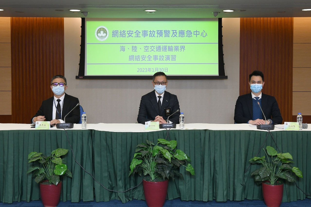 Para melhorar o sentido de cibersegurança dos operadores das infraestruturas críticas dos sectores dos transportes marítimo, terrestre e aéreo, e aumentar a sua capacidade de prevenção, resposta e resolução a nível de gestão e técnicas de cibersegurança, bem como controlar com eficácia os diversos tipos de riscos no âmbito da cibersegurança, o Centro de Alerta e Resposta a Incidentes de Cibersegurança (CARIC) realizou, no dia 30 de Janeiro, com as entidades de supervisão e os operadores deste sector, o ensaio de um incidente de cibersegurança, que teve lugar na sede da Polícia Judiciária, no Edifício Xin Hua. O ensaio contou com a participação do pessoal de 15 instituições, nomeadamente das três entidades de supervisão - a Direcção dos Serviços de Assuntos Marítimos e de Água, a Direcção dos Serviços para os Assuntos de Tráfego e a Autoridade de Aviação Civil, e de 12 operadores de infraestruturas críticas do sector dos transportes.