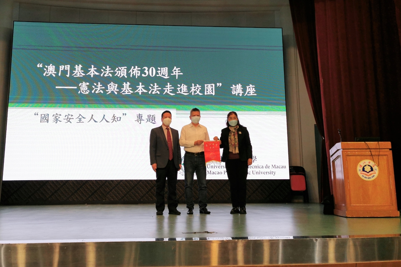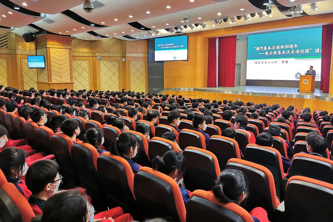 Comemora-se este ano o 30.º aniversário da promulgação da Lei Básica da Região Administrativa Especial de Macau. A fim de promover e fortalecer a interpretação precisa da Constituição e da Lei Básica por parte dos alunos, aumentar a consciência nacional e o espírito patriótico dos jovens, bem como aprofundar o conhecimento da importância da implementação bem-sucedida da Lei Básica sob o “Um País, Dois Sistemas” em Macau, o Centro de Estudos “Um País, Dois Sistemas” da Universidade Politécnica de Macau lançou uma série de actividades de comemoração do “30º Aniversário da Promulgação da Lei Básica de Macau - Introdução da Lei Básica e da Constituição no Campus Escolar”, tendo esta iniciativa sido muito bem acolhida pelas escolas secundárias e associações.