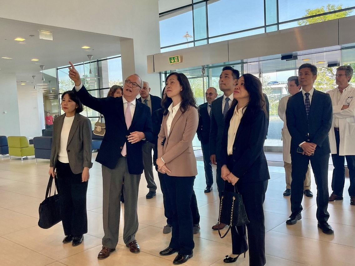 A delegação dos Serviços de Saúde, chefiada pela Secretária para os Assuntos Sociais e Cultura, Ao Ieong U, visitou à Fundação Champalimaud e ao Centro de Tratamento do Cancro, no dia 25 de Maio (hora de Portugal), onde o Vice-Presidente, João Silveira Botelho, fez uma apresentação sobre a história de desenvolvimento, o planeamento arquitectónico, os serviços de acção médica, as instalações e equipamentos, entre outros detalhes da Fundação. A delegação visitou ainda as instalações das enfermarias, equipamentos de radioterapia e aparelhos de teste do Centro de Tratamento do Cancro, tendo discutido e trocado impressões aprofundas com o pessoal do Centro sobre o turismo de saúde, o desenvolvimento mais recente das técnicas médicas e as experiências dos doentes, entre outros aspectos. A Secretária, Ao Ieong U, referiu que as duas partes têm ainda muito espaço de cooperação no que diz respeito à transferência médica e à cooperação na investigação científica.
