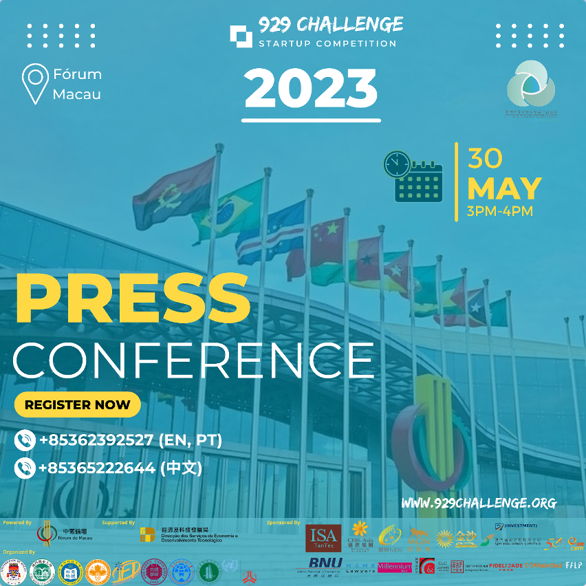 A 30 de Maio, realizou-se a conferência de imprensa na Sala Multifuncional do Secretariado Permanente do Fórum de Macau pelas entidades organizadoras. No discurso do Secretário-Geral Adjunto, Dr. Casimiro de Jesus Pinto, em representação do Secretariado Permanente do Fórum de Macau, referiu-se que o 929 Challenge é uma competição de renome na área do empreendedorismo e startups entre a China e os Países de Língua Portuguesa, tendo-se tornado um mecanismo vocacionado para atrair empreendedores dinâmicos e com uma visão global para a Grande Baía e potenciar os Países de Língua Portuguesa.