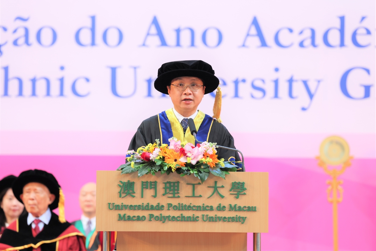 O Reitor da UPM, Im Sio Kei, agradeceu o apoio do País, do Governo da RAEM e de todos os sectores da sociedade, referindo que a UPM tem conseguido resultados frutíferos no ensino e na investigação científica e que a qualidade do ensino da UPM é reconhecida a nível nacional e internacional. Em 2022, a UPM foi novamente aprovada na auditoria à qualidade e na acreditação internacional realizada pela Quality Assurance Agency for Higher Education do Reino Unido; de acordo com a lista recém-divulgada dos “Prémios Nacionais de Sucesso Pedagógico do Ensino Superior (Licenciatura) 2022”, organizados pelo Ministério da Educação da RPC, a UPM foi novamente distinguida com o segundo lugar, tornando-se a única instituição do ensino superior de Macau a obter consecutivamente este prémio em duas edições; a UPM foi também galardoada, por três vezes, com o “Prémio de Qualidade da Educação da Região Ásia-Pacífico”, atribuído pela Rede de Qualidade da Ásia-Pacífico; no ranking das Universidades Mundiais mais influentes do Times Higher Education do Reino Unido, na área de “Cidades e Comunidades Sustentáveis”, a UPM surge na posição de 200+ lugares; e há cada vez mais estudantes da UPM que conquistaram prémios científicos e prémios em competições, dando glória a Macau. O Reitor Im Sio Kei encorajou os graduados a “terem o País no coração e abraçarem os sonhos”, a “atreverem-se a assumir responsabilidades e terem vontade de dedicar-se” e a “terem coragem de lutar e serem bom em inovar”. Salientou ainda que a UPM continuará a empenhada na formação de quadros qualificados, na investigação científica e na extensão dos serviços sociais, de modo a contribuir na nova era e na nova jornada para uma implementação estável e duradoura do princípio “Um País, Dois Sistemas” em Macau.
