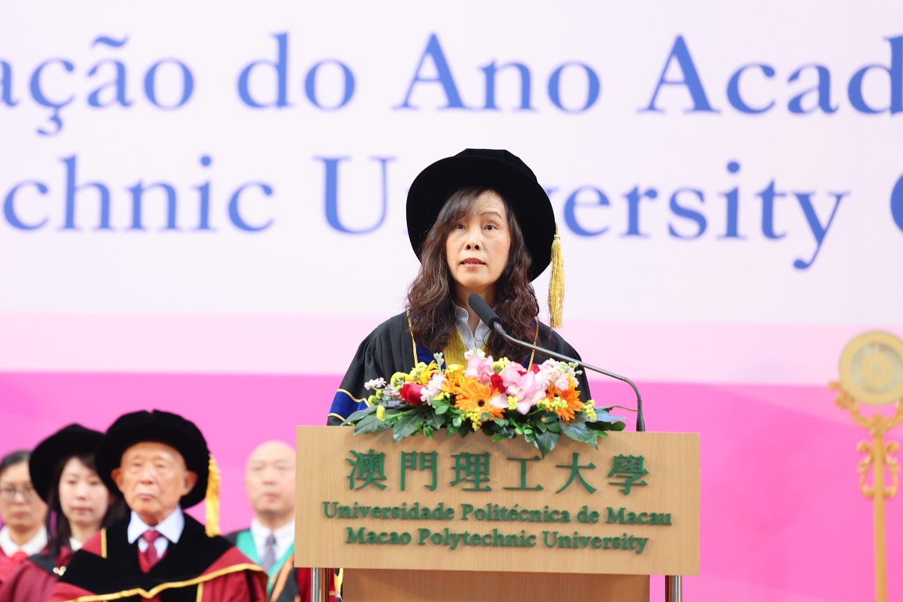 No seu discurso, a Secretária para os Assuntos Sociais e Cultura, Ao Ieong U, referiu que a UPM é uma base importante para a formação de quadros do ensino superior de Macau, e tem-se dedicado ao longo dos anos à formação de talentos aplicados. Nos últimos anos, a UPM tem organizado uma série de novos cursos nas áreas de big health, inteligência artificial e fintech, entre outras. Para além disso, a UPM tem-se dedicado a fortalecer os seus trabalhos interdisciplinares e de inovação científica e a construir laboratórios em conjunto com universidades de renome mundial, no sentido de incentivar a colaboração entre Indústria-Academia-Investigação e promover activamente a transformação dos resultados de investigação científica; tem promovido o intercâmbio e a cooperação académica com universidades de renome internacional para elevar constantemente o nível académico e a influência; a UPM conseguiu também a elevação da sua classificação no ranking das Universidades Mundiais mais influentes e, ainda mais, aumentar a competitividade e a influência do ensino superior de Macau. O Governo da RAEM vai continuar a persistir na sua ideologia de governação de “Promover a prosperidade de Macau através da educação” e “Construir Macau através da formação de talentos” e a responder positivamente ao apelo do País, pelo que continuará a reforçar a formação de quadros qualificados e a promover vigorosamente o progresso da inovação tecnológica; continuará a apoiar a UPM e as outras instituições de ensino superior de Macau para que possam desenvolver e realçar as suas características distintivas, formando os tipos de talentos necessários para o desenvolvimento social. As instituições locais de ensino superior continuarão a explorar as suas próprias vantagens na área de investigação científica e tecnológica, focando-se na ciência e tecnologia mais avançada a nível internacional, contribuindo assim para a construção da China como um país forte em ciência e tecnologia. Por fim, a Secretária Ao Ieong U encorajou os graduados a herdar e difundir o espírito de amor pela Pátria e por Macau e a contribuir para o desenvolvimento do País e de Macau, desejando ainda que os graduados possam continuar a desenvolver as suas potencialidades e a trabalhar em conjunto para promover a diversificação adequada da economia de Macau, dando assim os contributos para uma implementação estável e duradoura do princípio “Um País, Dois Sistemas” em Macau.