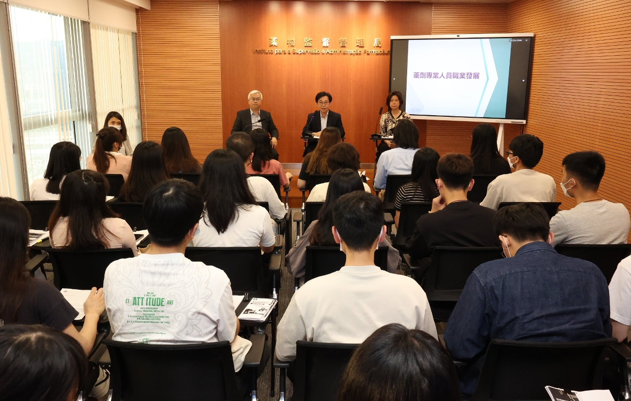 O Instituto para a Supervisão e Administração Farmacêutica (ISAF) realizou recentemente uma sessão de intercâmbio, em que se apresentou o estado actual e o desenvolvimento da profissão farmacêutica para os estagiários de farmacêutico, de farmacêutico de medicina tradicional chinesa e de ajudante técnico de farmácia, que em breve iniciarão a sua carreira, de modo a auxiliar o planeamento de carreira profissional através de interacção e intercâmbio com os estagiários. A sessão contou com a presença do Presidente do ISAF, Choi Peng Cheong, do Vice-Presidente do ISAF, Ng Kuok Leong, da Chefe do Departamento de Licenciamento e Inspecção, Cheang Im Hong, e da Chefe do Departamento de Planeamento e Gestão de Qualidade, Lao Nga Man.