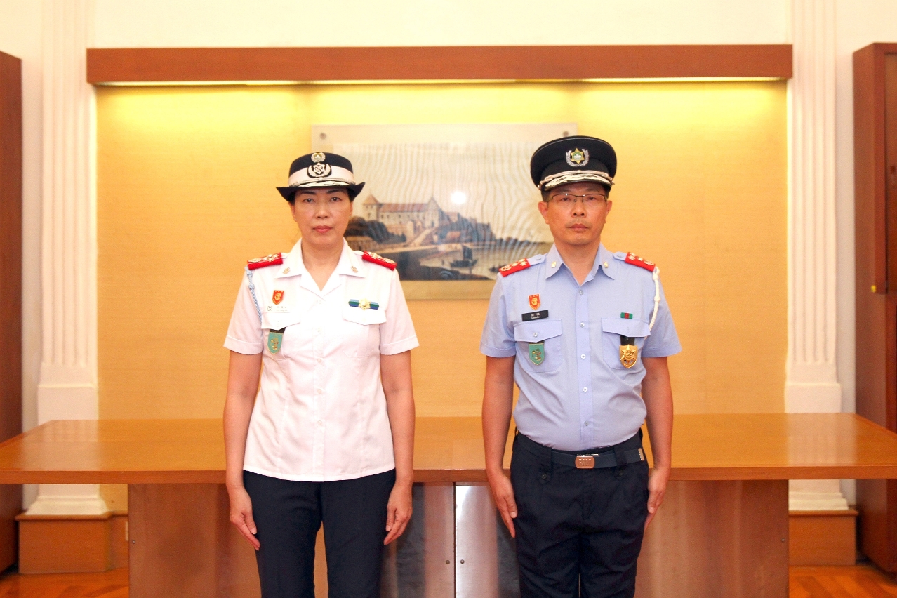 A Direcção dos Serviços das Forças de Segurança de Macau (DSFSM) realizou a cerimónia da tomada de posse do subdirector e do chefe de departamento, sendo que Chan Io e Kong Wai Chon assumiram as funções de subdirector e chefe do Departamento de Apoio Técnico, respectivamente. O evento, presidido pela directora destes Serviços, superintendente-geral alfandegária Kok Fong Mei, que assistiu, juntamente com o subdirector Kong Iat Fu e as chefias de diversos departamentos, à prestação do compromisso de honra e à assinatura do termo de posse, por parte dos novos subdirector e chefe de departamento.