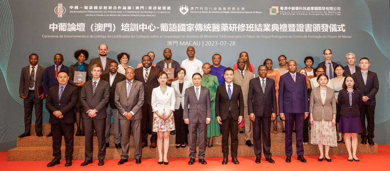 A 28 de Julho, realizou-se, no MGM Macau, a cerimónia de encerramento e de entrega de certificados do "Colóquio sobre a Cooperação no domínio de Medicina Tradicional para os Países de Língua Portuguesa", co-organizado pelo Secretariado Permanente do Fórum para a Cooperação Económica e Comercial entre a China e os Países de Língua Portuguesa (Macau) e a Direção dos Serviços de Saúde do Governo da RAEM, e, realizado pelo Parque Científico e Industrial de Medicina Tradicional Chinesa para a Cooperação entre Guangdong–Macau (GMTCM, na sigla inglesa). A cerimónia contou com a presença do Secretário-Geral do Secretariado Permanente do Fórum de Macau, Ji Xianzheng, do Director dos Serviços de Saúde de Macau, Alvis Lo Iek Long, e, da Administradora e Diretora-Geral Adjunta do Parque GMTCM, Wang Dan, que endereçaram, respectivamente, as suas intervenções.