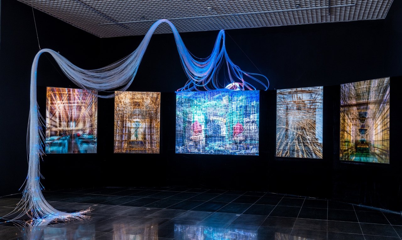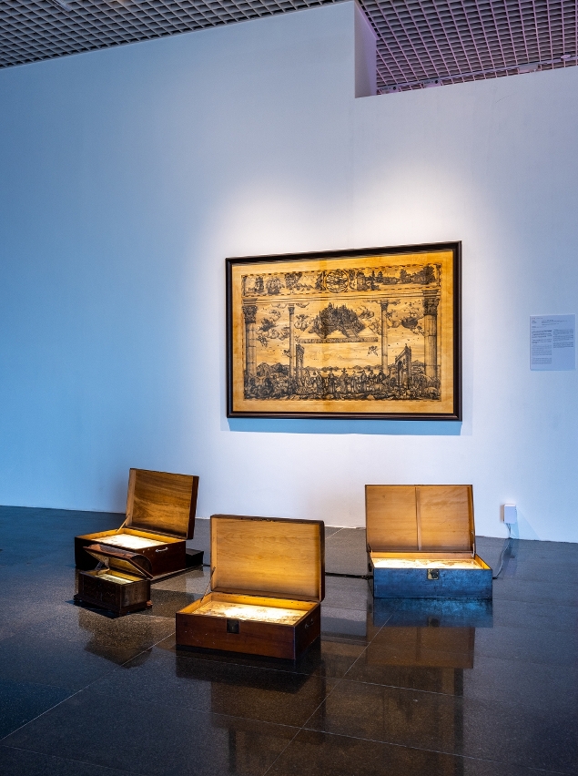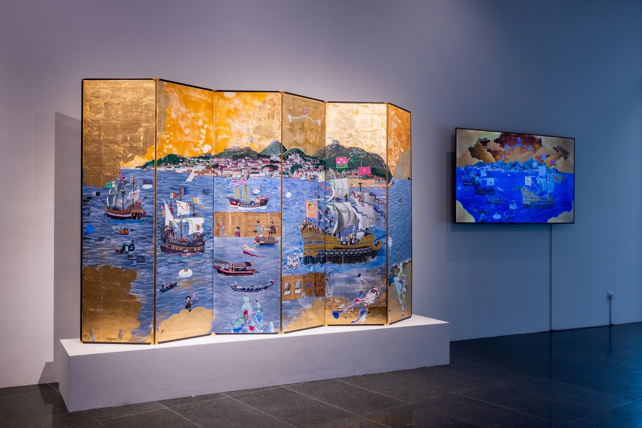 Tendo como fio condutor “encontro entre ciência e religião em Macau”, as obras em exposição têm uma expressão e profundidade únicas, explorando a interacção entre ciência e religião, apresentando reflexões variadas e revelando, em pleno, a diversidade da arte feita em Macau. Praia Grande I e Praia Grande II de Konstantin Bessmertny, retratam Macau como um florescente porto comercial nos séculos xvi e xvii. Na obra A Génese da Racionalidade, o artista Ung Vai Meng utiliza a lenda sobre o nascimento da racionalidade, contemplando os riscos do desenvolvimento tecnológico decorrentes do actual excesso de confiança na racionalidade. Fogo Gelado do artista Lampo Leong, reflecte as questões associadas às alterações climáticas através da combinação de pintura a tinta e vídeo, e de gelo e fogo. Estrutura Anormal do artista Chan Hin Io explora uma estrutura ecológica complicada, a qual se trata de uma metáfora do destino da cidade. Fonte da Visão, da artista Lai Sut Weng, procura interpretar os desejos humanos a partir de diferentes perspectivas. Renascimento do artista Fok Hoi Seng, desenha mapas da “terra redonda” e da “terra plana”, mostrando a forma como a ciência e a religião construem a actual conjuntura civilizacional.