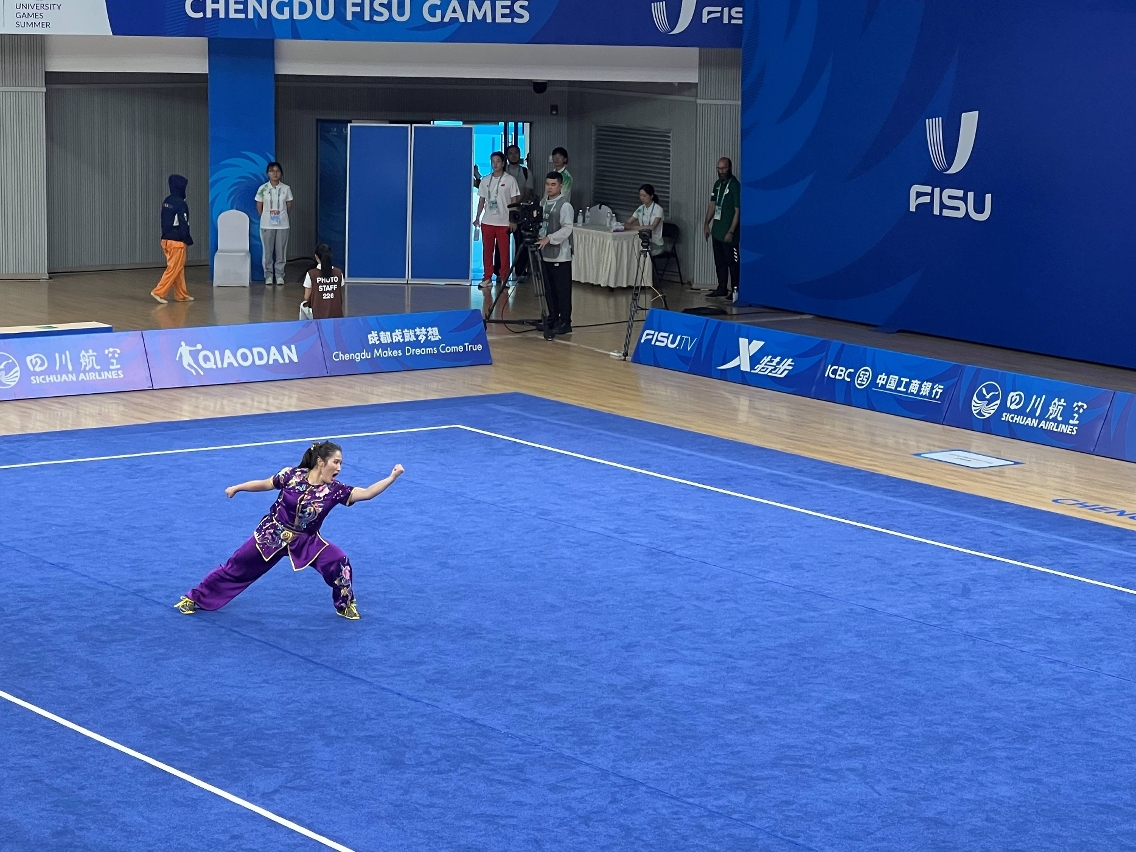 A delegação desportiva de Macau, China continuam a disputar, hoje (dia 30), as modalidades da 31.a edição dos Jogos Mundiais Universitários, que se encontram a decorrer em Chengdu, província de Sichuan, terminando com alegria por ter conquistado mais 5 medalhas para Macau, a saber: Wong Sam In conquistou a primeira medalha de ouro para Macau nesta edição, na modalidade feminina de arte marcial “nanquan”, com resultado de 9.643 pontos; Wong Weng Ian conquistou 2 medalhas de prata na modalidade feminina de arte marcial “jianshu” e “qiangshu”, com resultados de 9.656 pontos e de 9.593 pontos, respectivamente; Cheung Ioi Chit conquistou 1 medalha de prata na modalidade masculina de arte marcial “nangun”, com resultado de 9.66 pontos; e Lei Cheok Ieong conquistou 1 medalha de bronze na modalidade masculina de arte marcial “gunshu”, ao terminar com resultado de 9.6 pontos. Até à data, a delegação desportiva de Macau conquistou 1 medalha de ouro, 3 de prata e 2 de bronze, resultado este se considera muito positivo.
